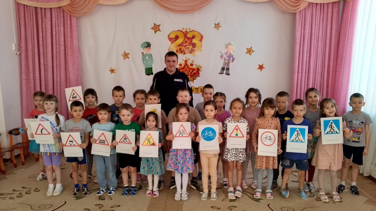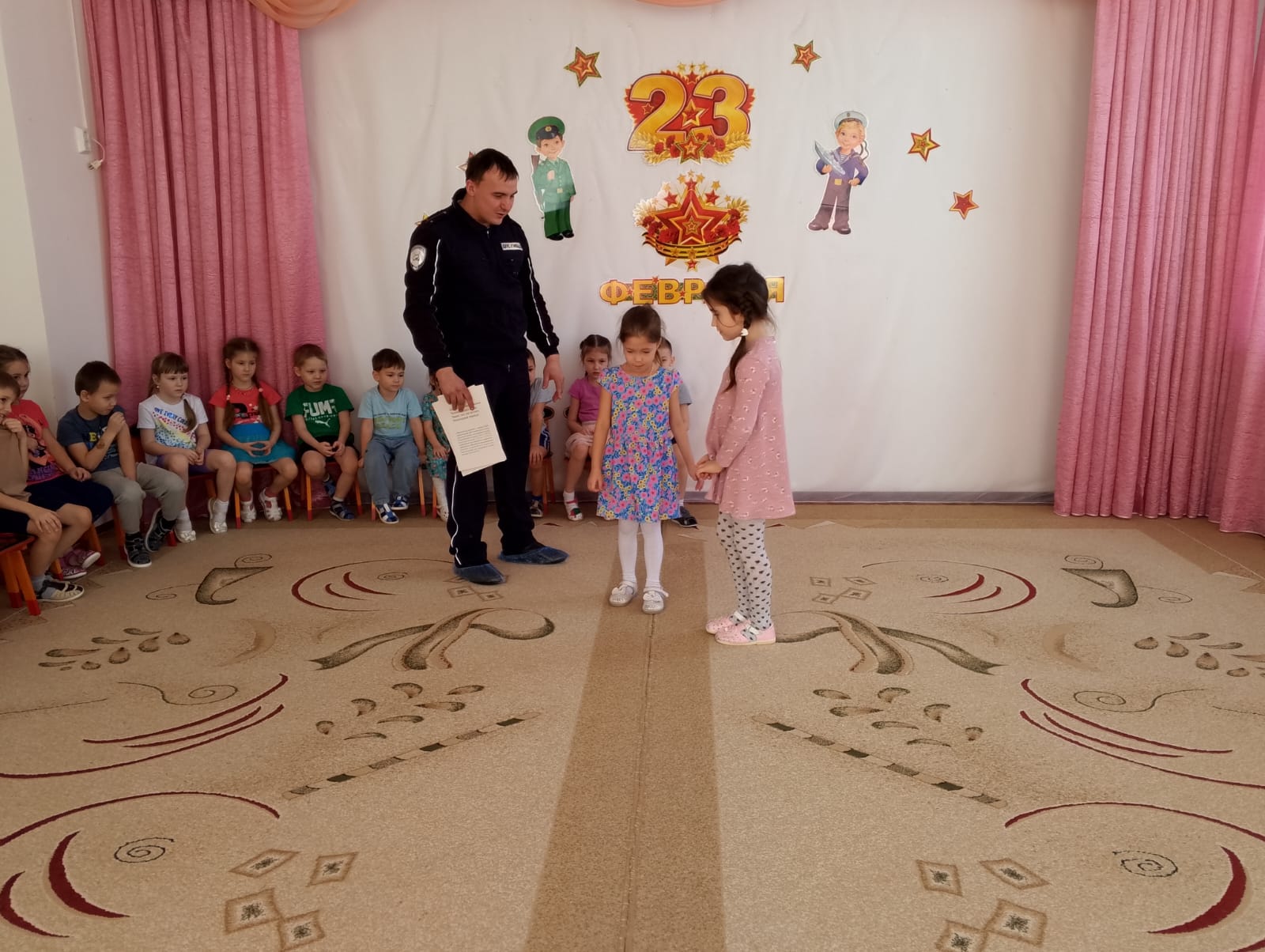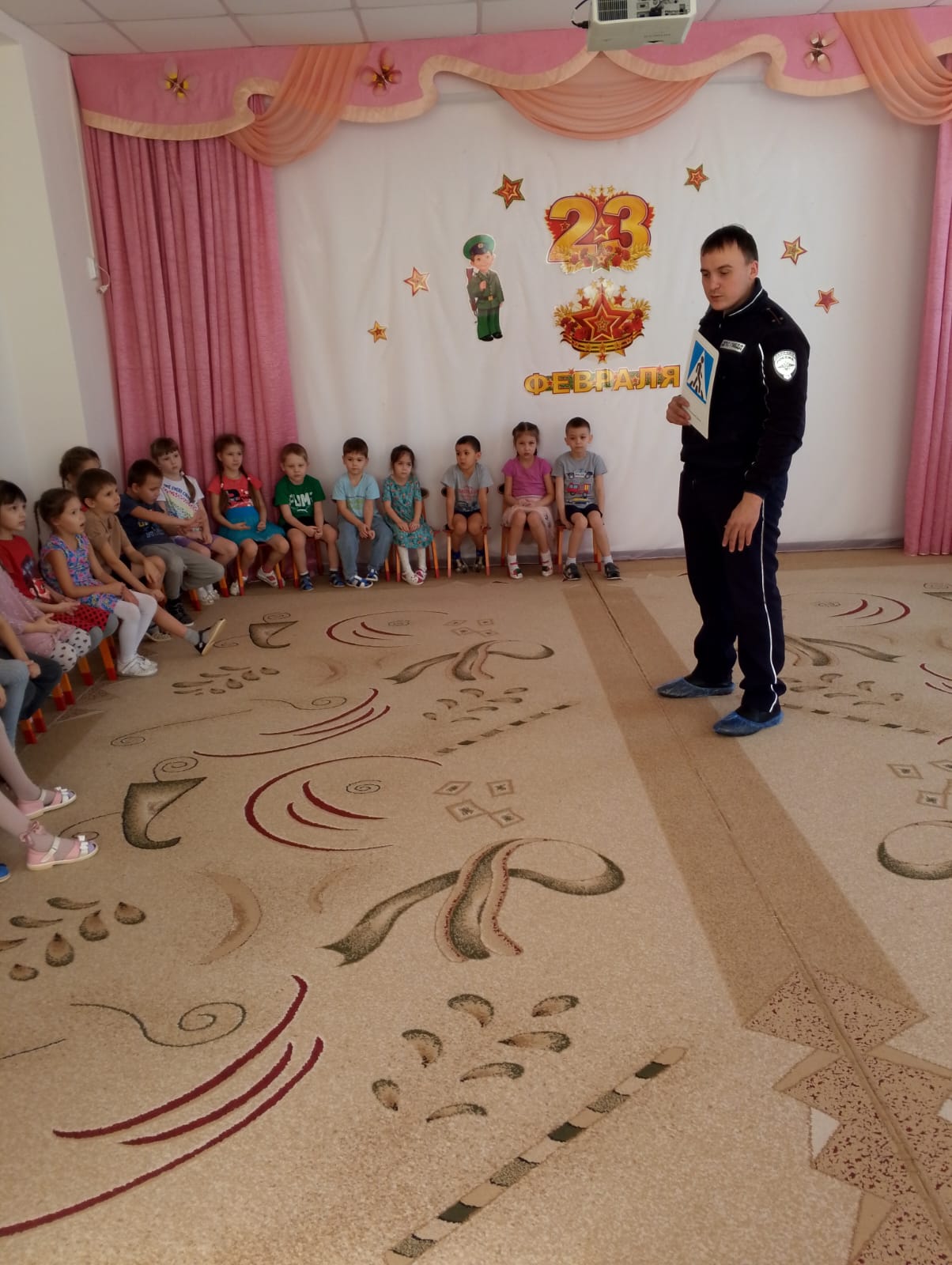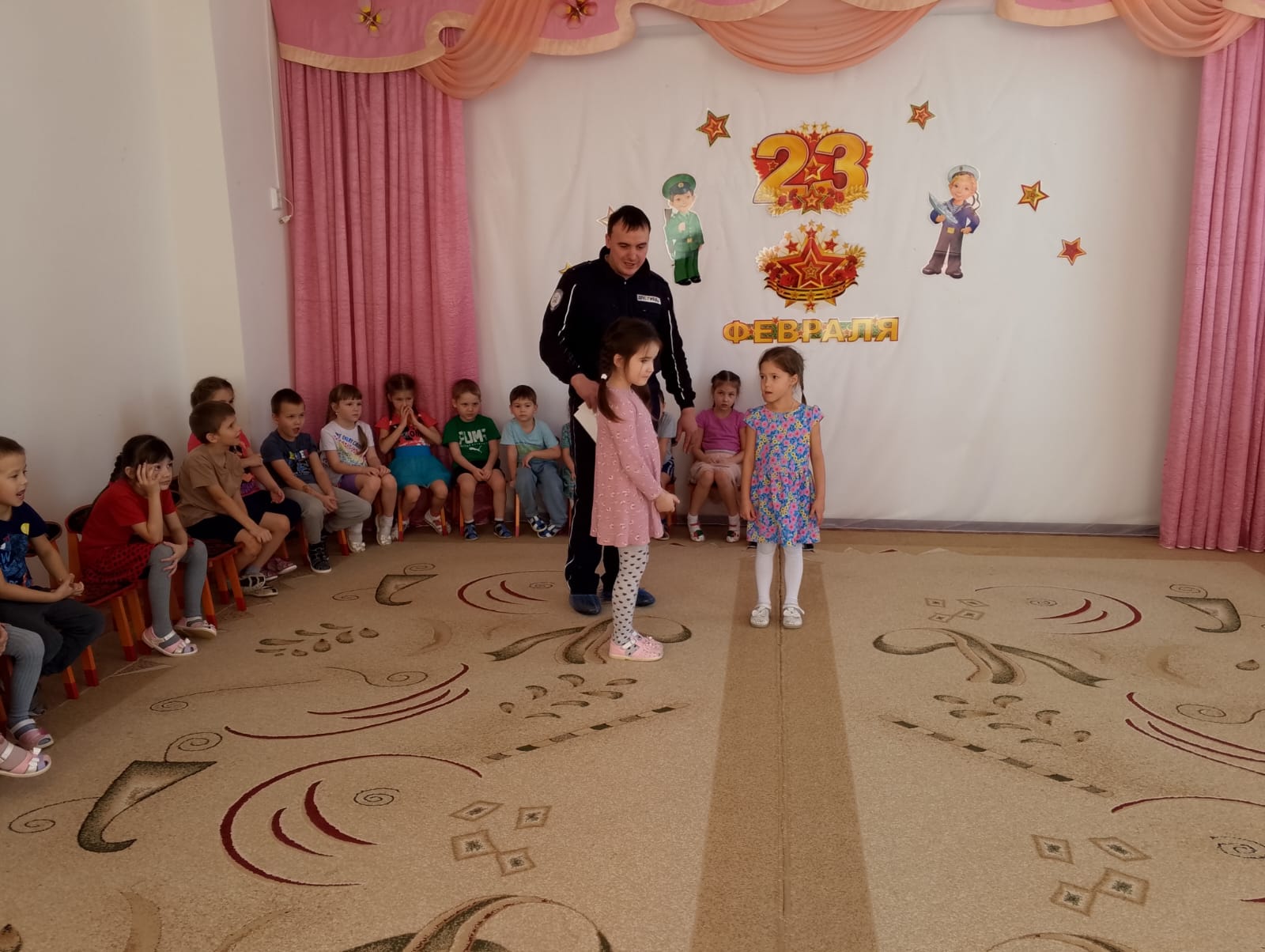 В рамках "недели мужества", месячника оборонно-массовой, патриотической и спортивной работы в детском саду "Рябинушка" прошла встреча с инспектором по пропаганде детского дорожно-транспорного травматизма госавтоинспекции Тетюшского района Сагдеевым Л.Р.
