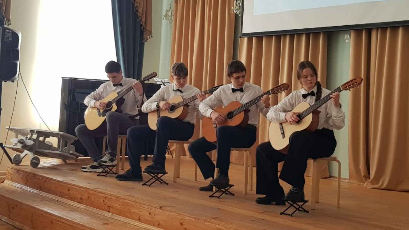 Со сцены прозвучали инструментальные и вокальные номера в исполнении учащихся и преподавателей.