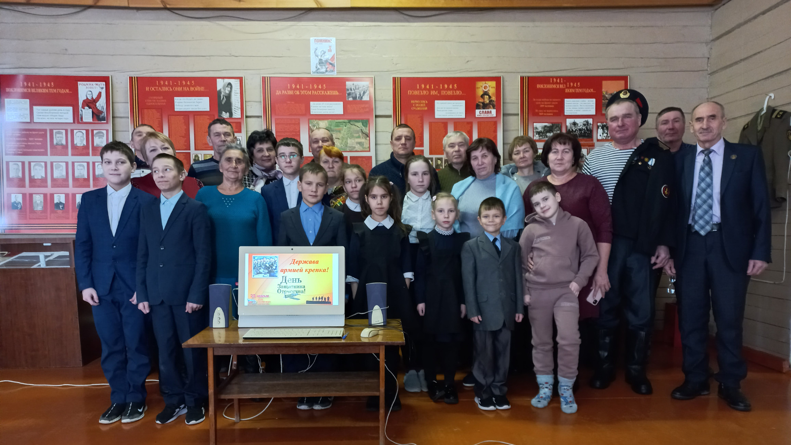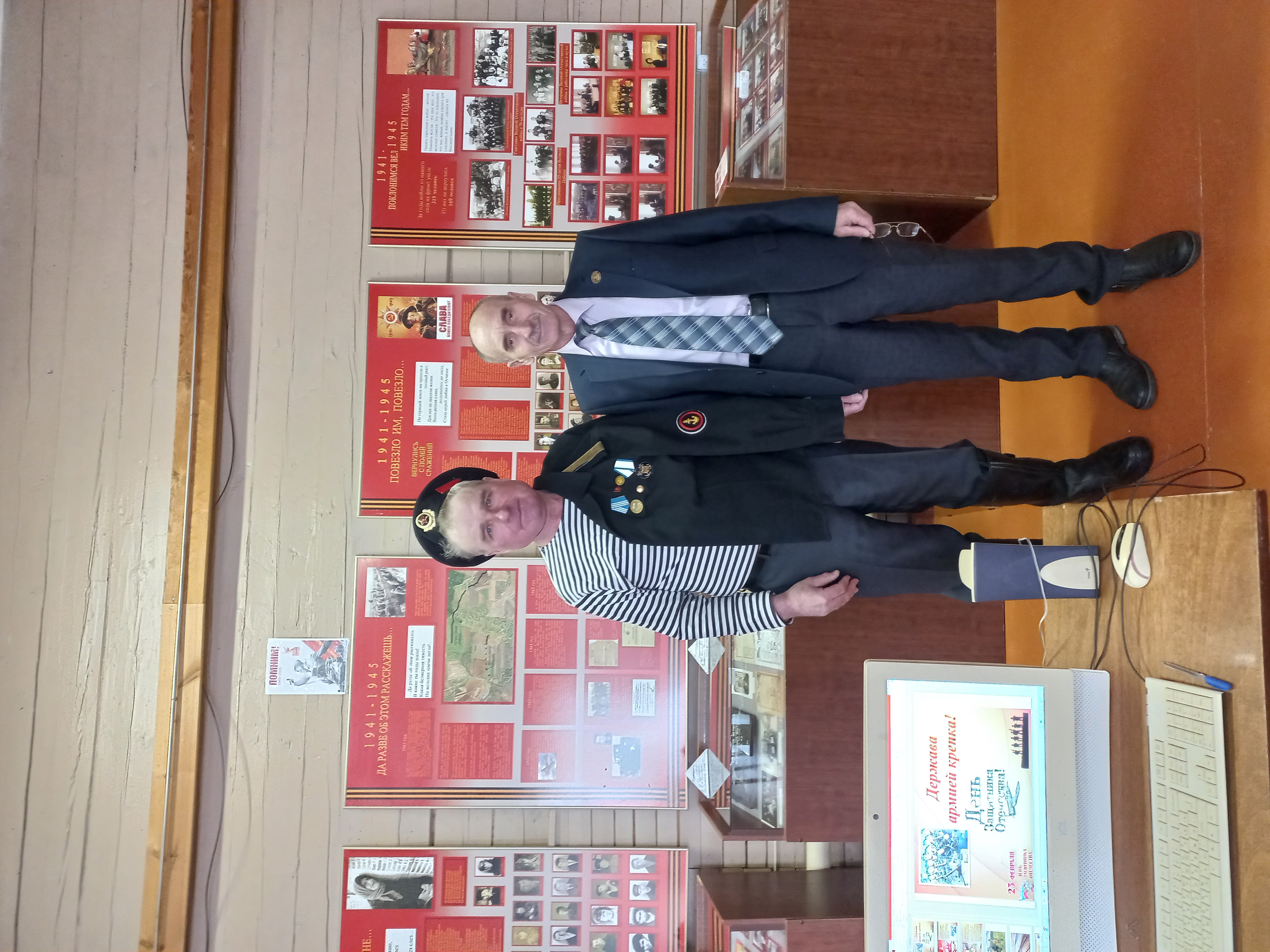 Зав.музеем Пыркин А.А. рассказал о истории возникновения празднования этого дня, об испытаниях, которые выпали на долю армии нашей страны в годы гражданской, Великой Отечественной и локальных войн. Рассказ зав. музея чередовался музыкальными паузами и чтением стихотворения «Моему брату» Никаноровой Елены Аркадьевны собственного сочинения. К мероприятию была оформлена выставка «Они служили в горячих точках», где были представлены фотографии, письма к родителям, благодарственные письма солдат, солдатская гимнастерка из фондов музея участников афганской и чеченской войн.