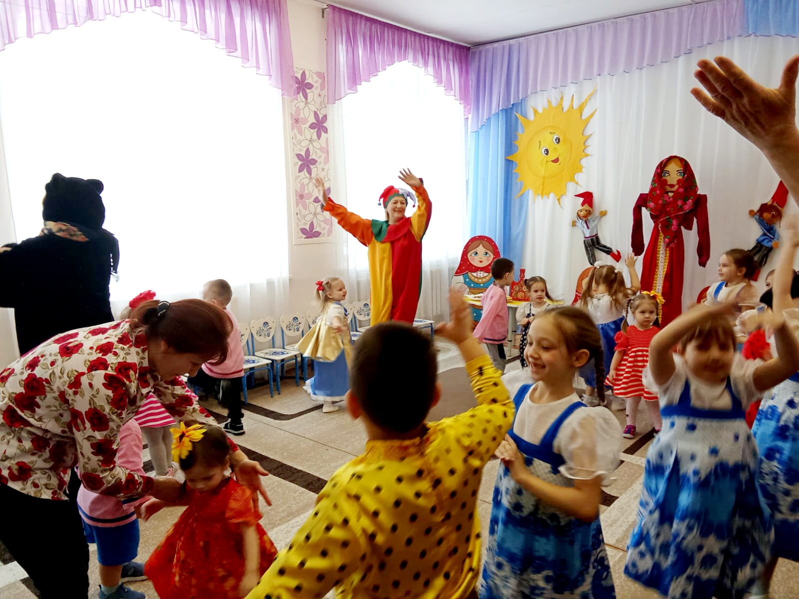 Веселый русский народный праздник «Масленица» ежегодно проводится в детском саду «Малыш». Он стал традиционным и любимым для детей. Вот и в этом году 27 февраля ребята стали участниками празднования Масленицы. Всю неделю с детьми велись беседы о традициях этого праздника, как раньше на Руси праздновали Масленицу, что означает и откуда берет начало этот обычай. И как положено на празднике, дети от души веселились: водили хоровод вокруг Масленицы, пели, играли с петрушкой, угощались сладкими блинами и вкусными угощениями.