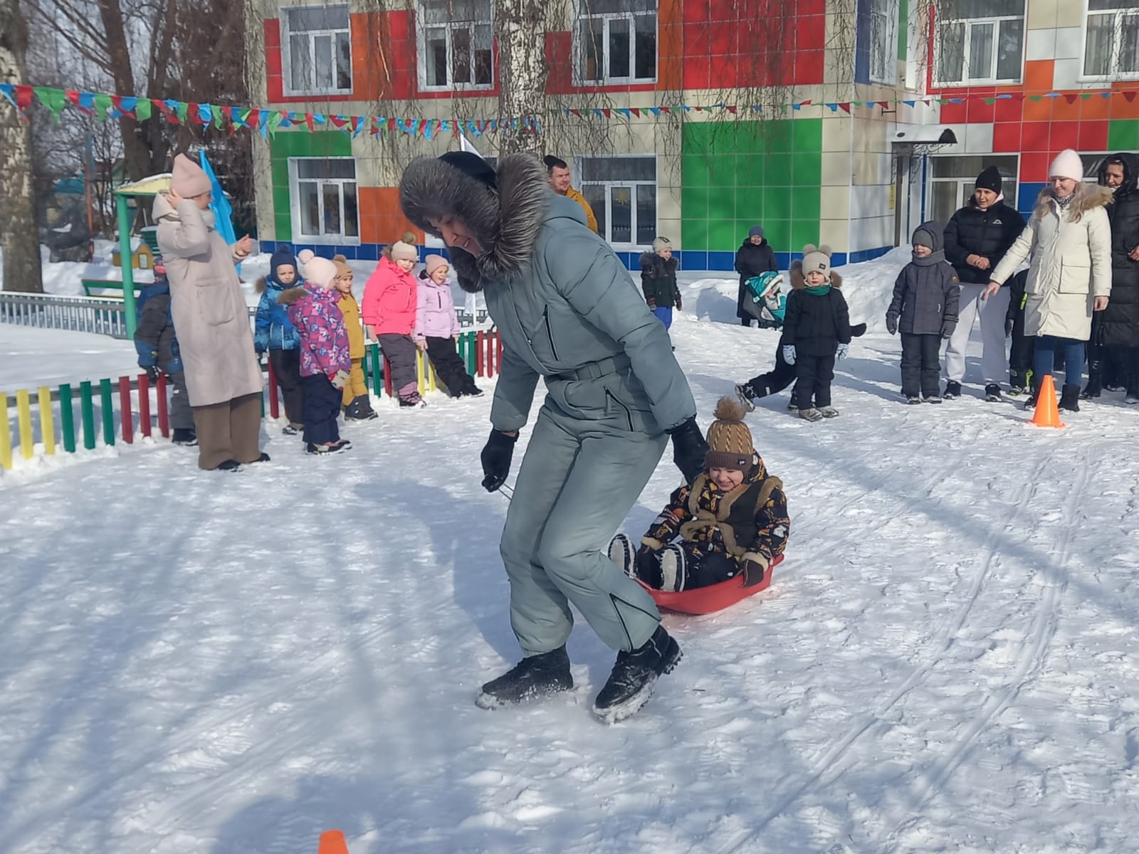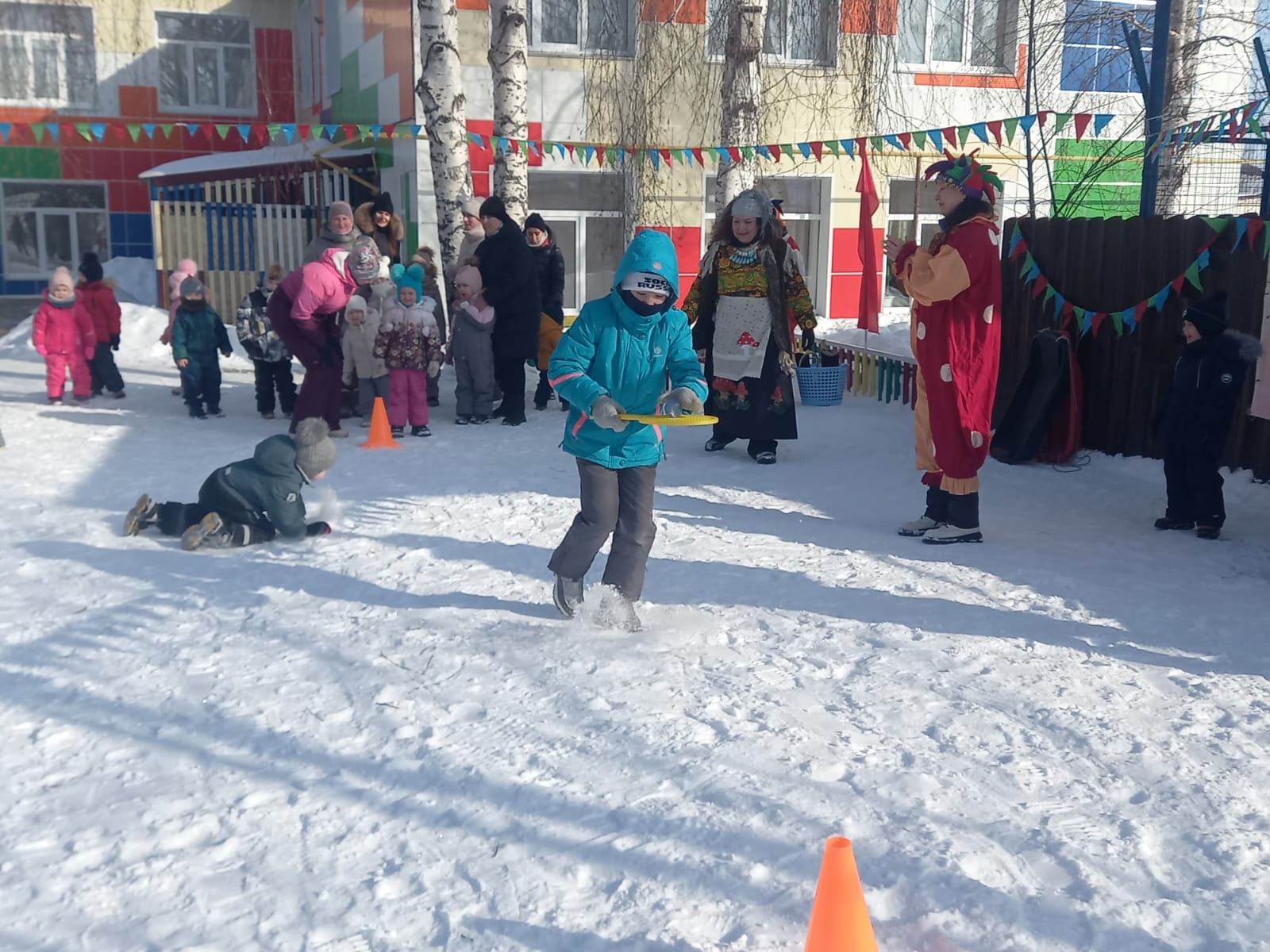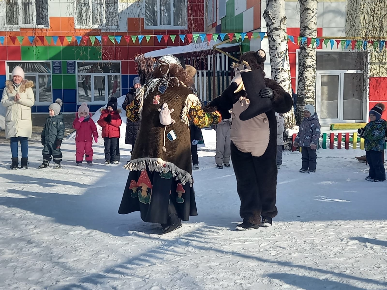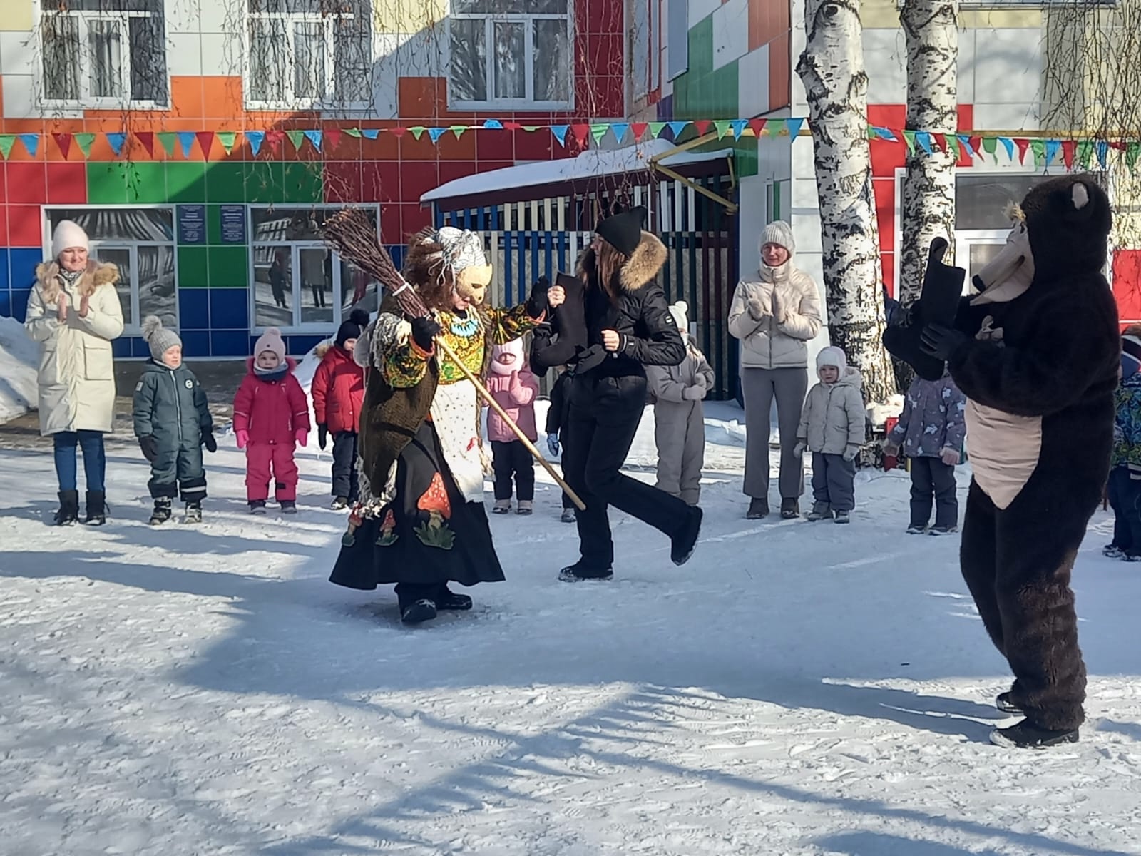 С самого утра в саду царило праздничное настроение. Дети вместе с родителями участвовали в традиционных играх и конкурсах, таких как «Перетягивание каната», «Полетаем на метле» и «Прокатит с ветерком».,т. д. Хороводные игры объединили и больших и маленьких, взрослых и детей.