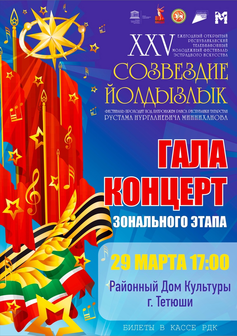 29 марта в 17.00 ч. в Тетюшском районном Доме культуры пройдет грандиозное событие – Гала-концерт зонального этапа XXV Открытого республиканского телевизионного молодежного фестиваля эстрадного искусства «Созвездие – Йолдызлык – 2025»! За 25 летнюю историю зональный этап фестиваля впервые будет проводиться в городе Тетюши. В юбилейном зональном этапе открытого республиканского телевизионного молодежного фестиваля эстрадного искусства «Созвездие-Йолдызлык - 2025» примут участие районы заволжской зоны республики: Буинский, Дрожжановский, Кайбицкий, Апастовский, Камско-Устьинский, Верхнеуслонский, Тетюшский районы.