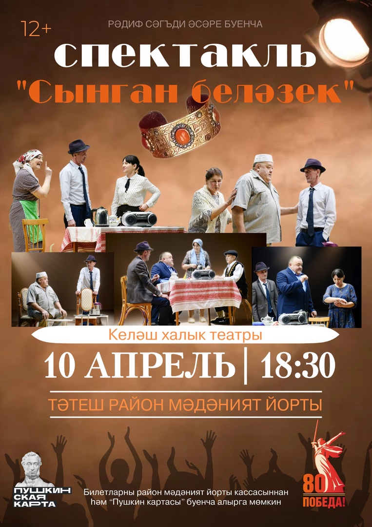 10 апреля в 18.30 часов в Тетюшском районном Доме культуры состоится показ спектакля "Сынган беләзек" («Сломанный браслет») по пьесе талантливого драматурга Рәдифа Сәгъди. Артисты народного театра «Ихлас», работающего при Кляшевском сельском Доме культуры, покажут спектакль о жизни в годы войны.