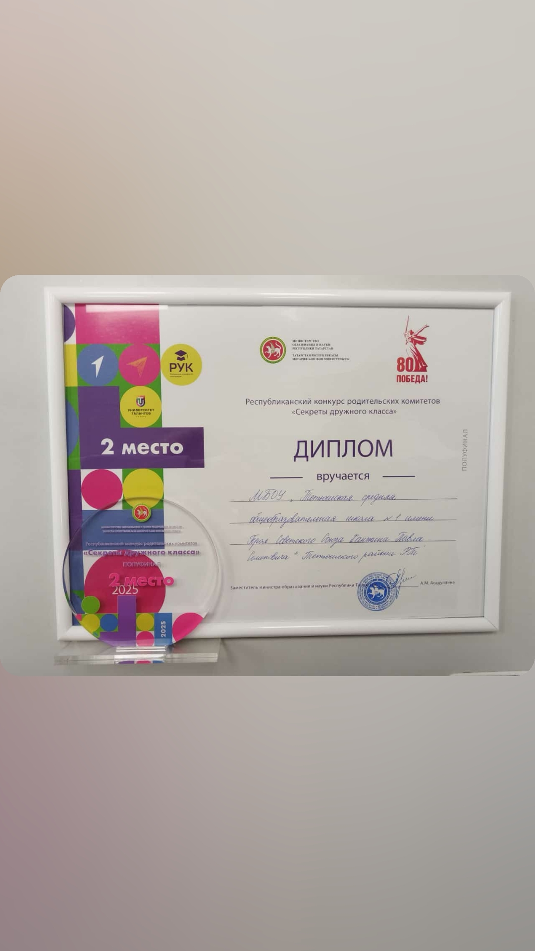 28 марта на базе Казанского Многопрофильного лицея N188 прошел полуфинал республиканского конкурса среди родительских комитетов "Секреты дружного класса", в котором родительский комитет 7А (классный руководитель Хамидуллина Гузель Раисовна) класса МБОУ "Тетюшская средняя общеобразовательная школа имени Героя Советского Союза Ханжина Павла Семеновича" занял 2 место и получил путевку в финал,который состоится 5 апреля в селе Муслюмово. Желаем победы!!!