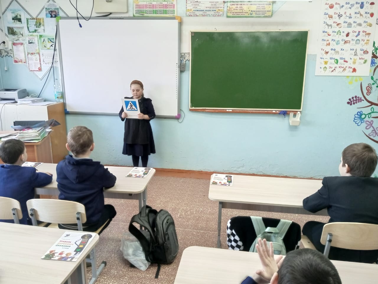 Беседу с учащимися провела классный руководитель Королева Е. А. Она еще раз напомнила детям о том, что одно из самых распространенных ДТП — это наезд на пешехода. Самое большое количество ДТП происходит в тёмное время суток. В это время водителям сложно вовремя увидеть человека, вышедшего на проезжую часть. Неблагоприятные погодные условия и неосвещённые участки улиц ещё больше усугубляют ситуацию. Но защититься пешеходам помогут светоотражающие элементы на их одежде. Ребята повторили правила безопасности дорожного движения во время нахождения на улице.