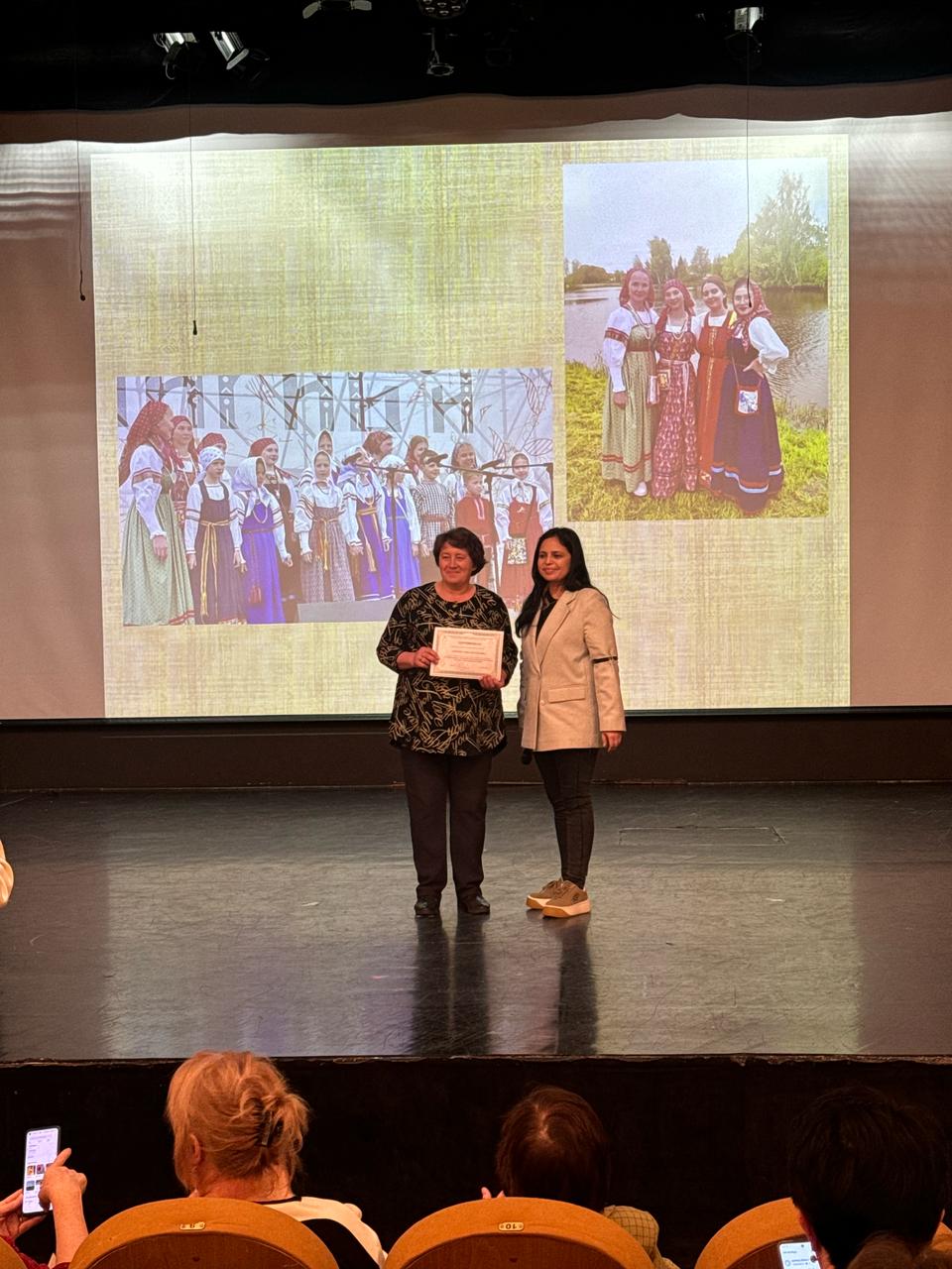 Были рассмотрены актуальные темы фольклорного творчества, показана работа с хореграфическим материалом и мастер- классы по работе с фольклорными коллективами. По окончании курсов ей был вручен сертификат.