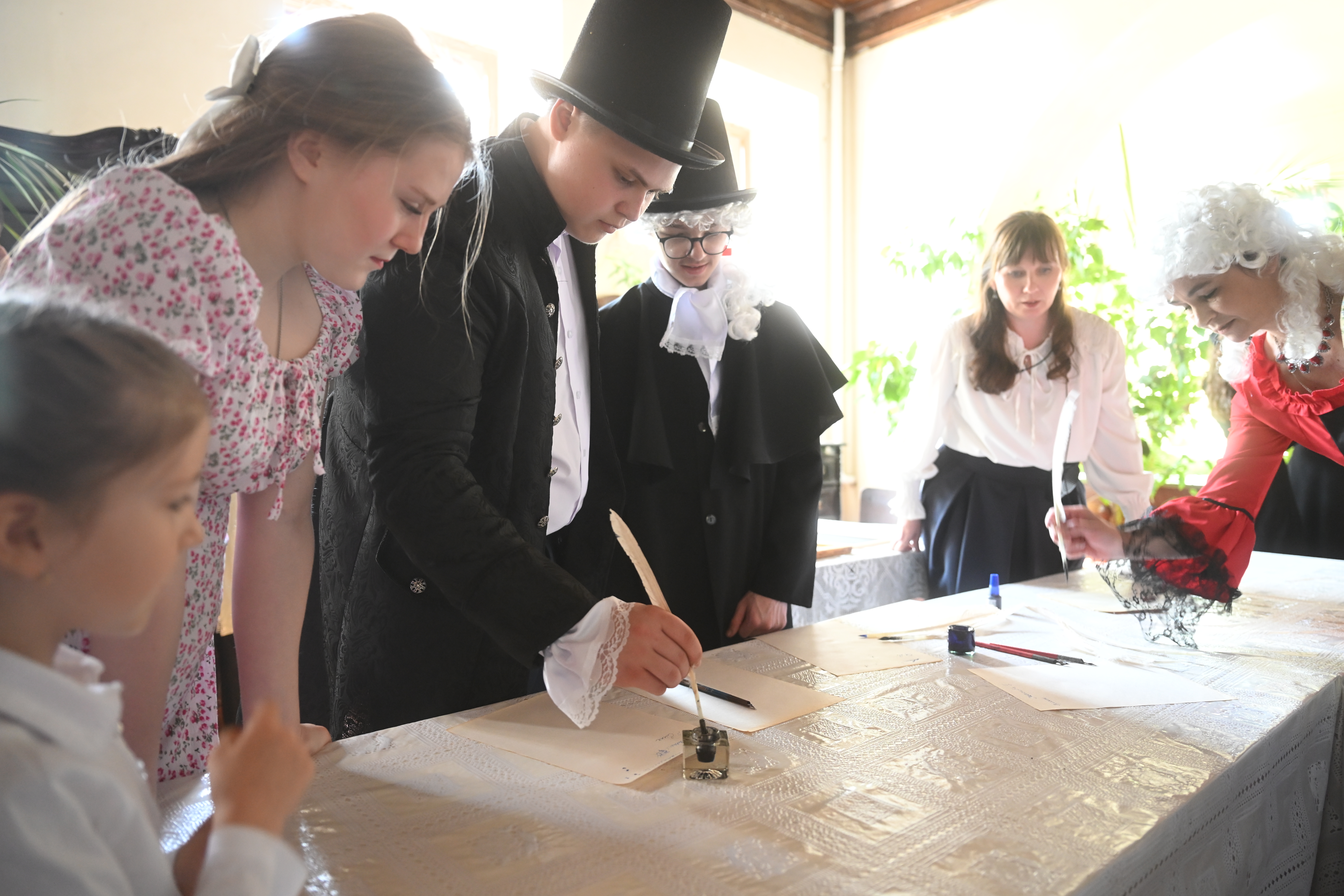 В преддверии Дня родного языка, в рамках национального проекта «Молодежь и дети» в старом парке загадочной дворянской усадьбы Молоствых можно было увидеть вальсирующие пары, прекрасных дам и галантных кавалеров, услышать шелест бальных платьев с блеском украшений. Ведь там состоялся настоящий бал! Притом не просто бал, а Пушкинский, с участием самого Александра Сергеевича – гения русского литературного языка.