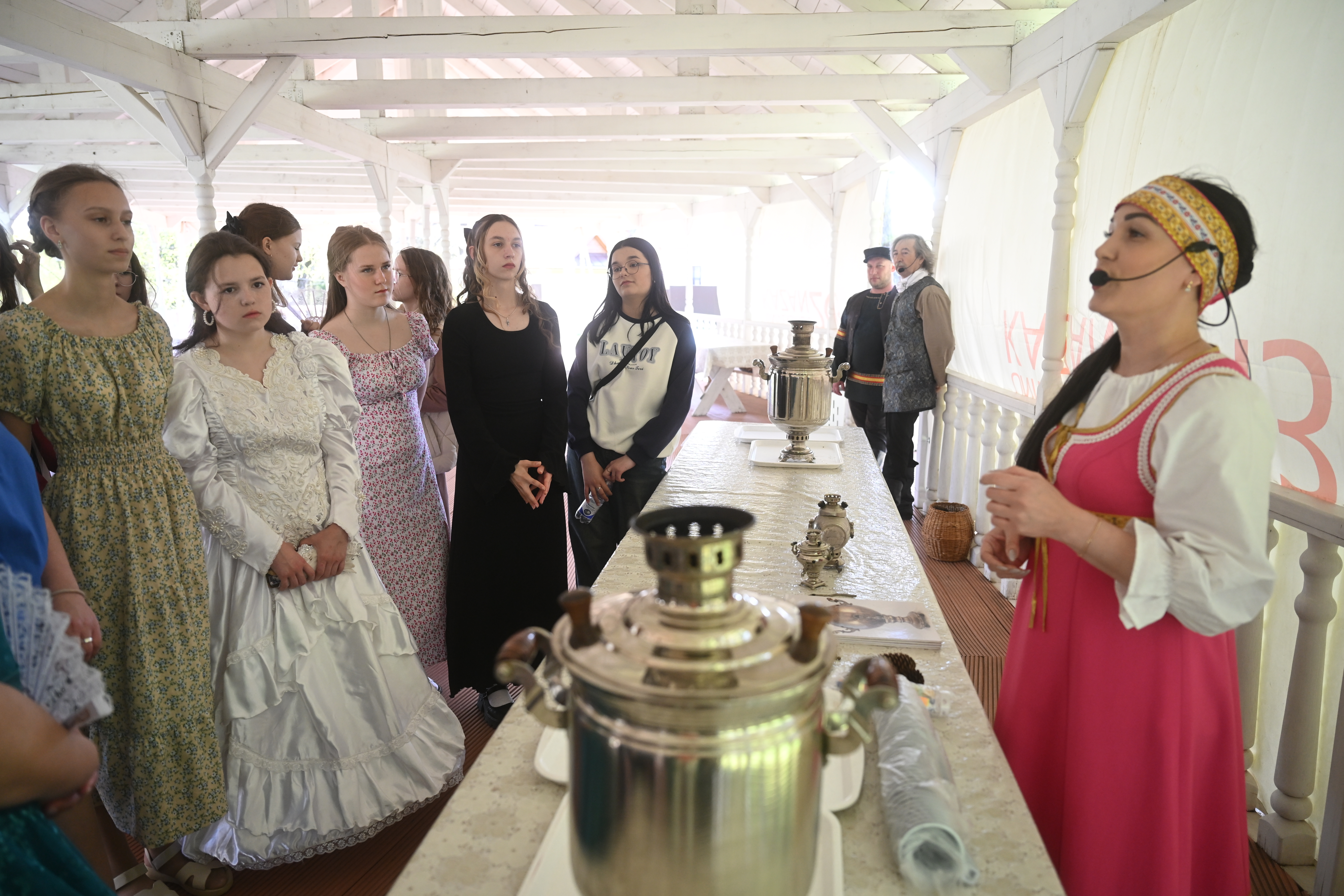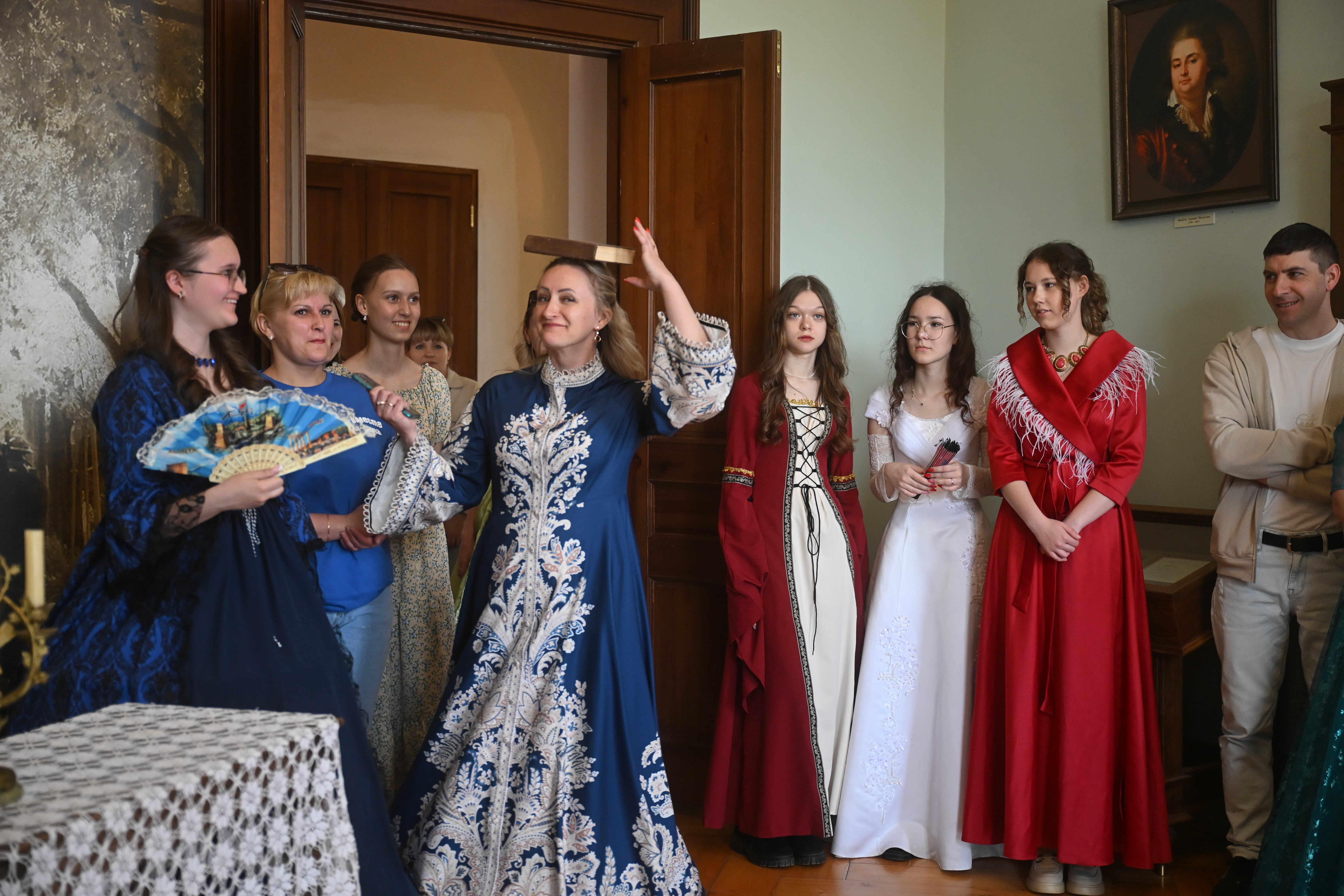 Мероприятие было организовано в рамках партнёрского проекта «Пушкинский бал. Энциклопедия русской жизни» сотрудниками музеев, совместно с учащимися 9 «А» класса ТСШ№1, родителями и классным руководителем Шарафеевой Л.Г. Исторические персонажи, разыгранные театрализованные миниатюры из жизни дворянства и крестьянства дореволюционной России воссоздали подлинную атмосферу тех времён, подарив присутствующим незабываемые, романтические моменты. В литературно-музыкальном усадебном салоне звучали трогательные строки Пушкина и романсы на стихи хозяйки усадьбы, с гувернанткой беседовали о культуре речи, о правилах хорошего тона и этикета в дворянской семье, как и великий поэт, писали настоящим гусиным пером и чернилами.