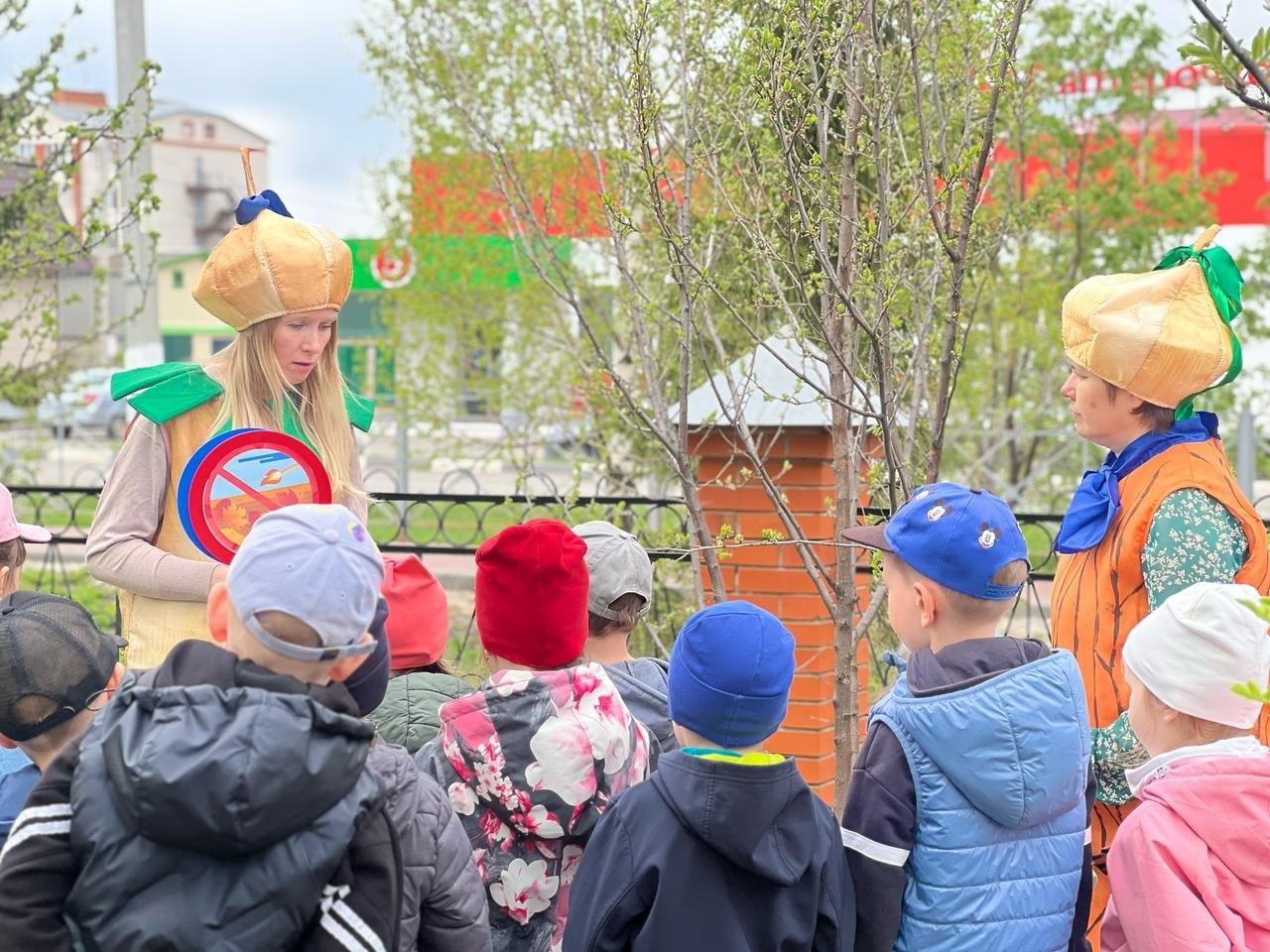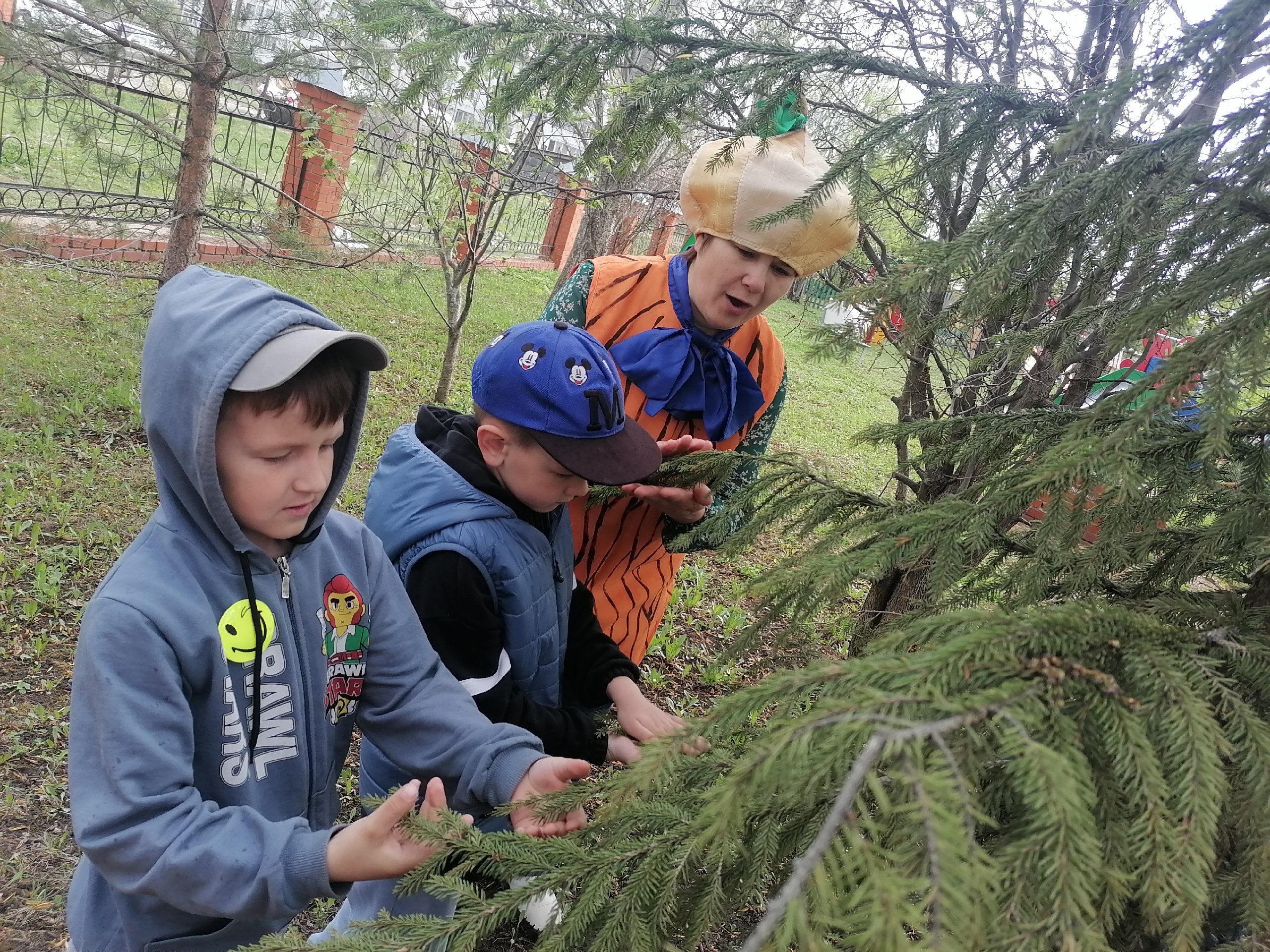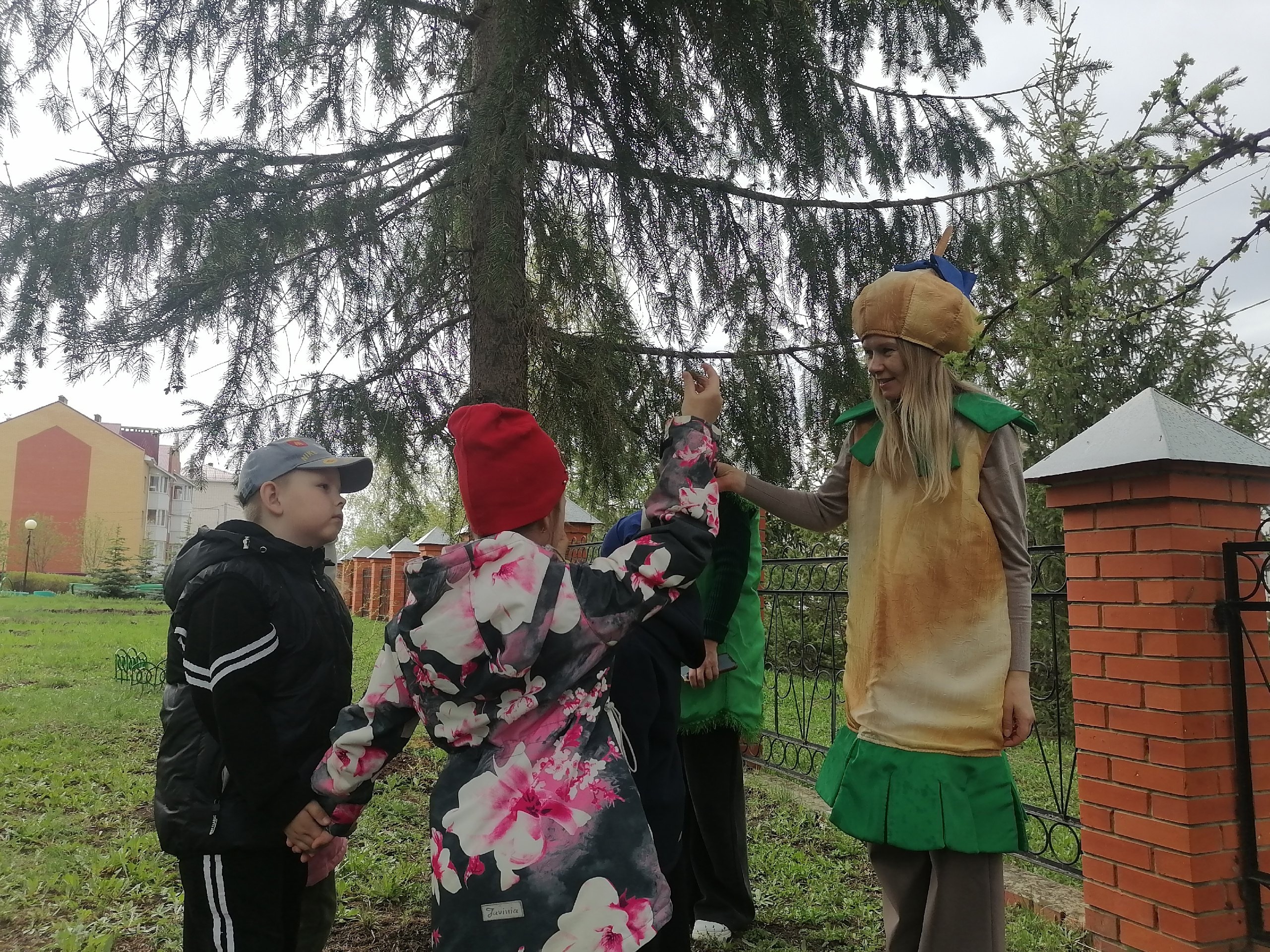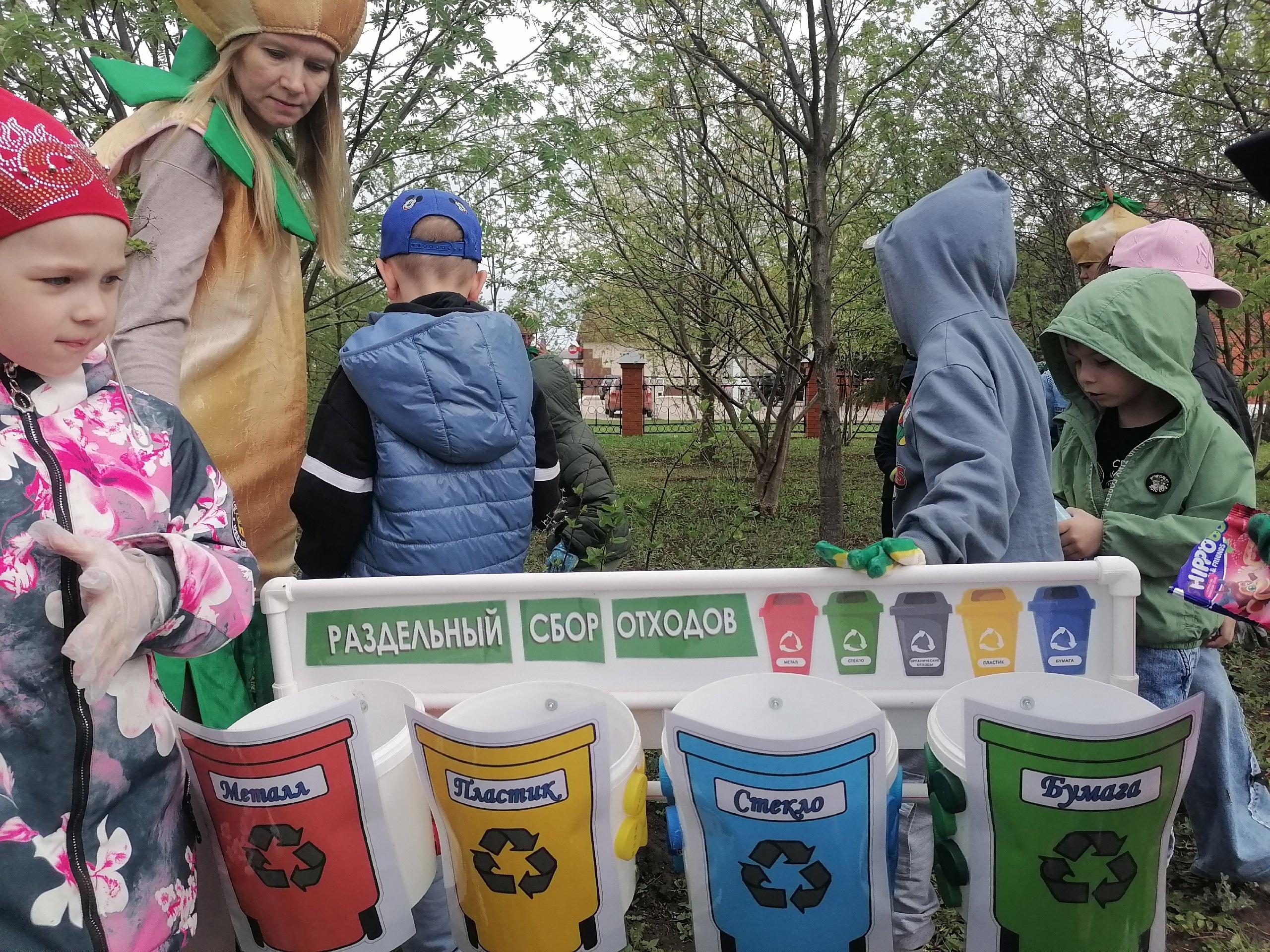 Выйдя на прогулку в зону леса, дети встретили Ёлочка, Шалун, Тихоня и Умница. Они обратились к ребятам с просьбой помощь навести порядок в лесу. Вместе с героями дети вспомнили правила поведения в лесу, поговорили для чего важно сортировать мусор, отметили какие изменения произошли в природе с наступлением тёплой весенней погоды, рассмотрели растущие в лесу деревья, поиграли в весёлые и познавательные игры.