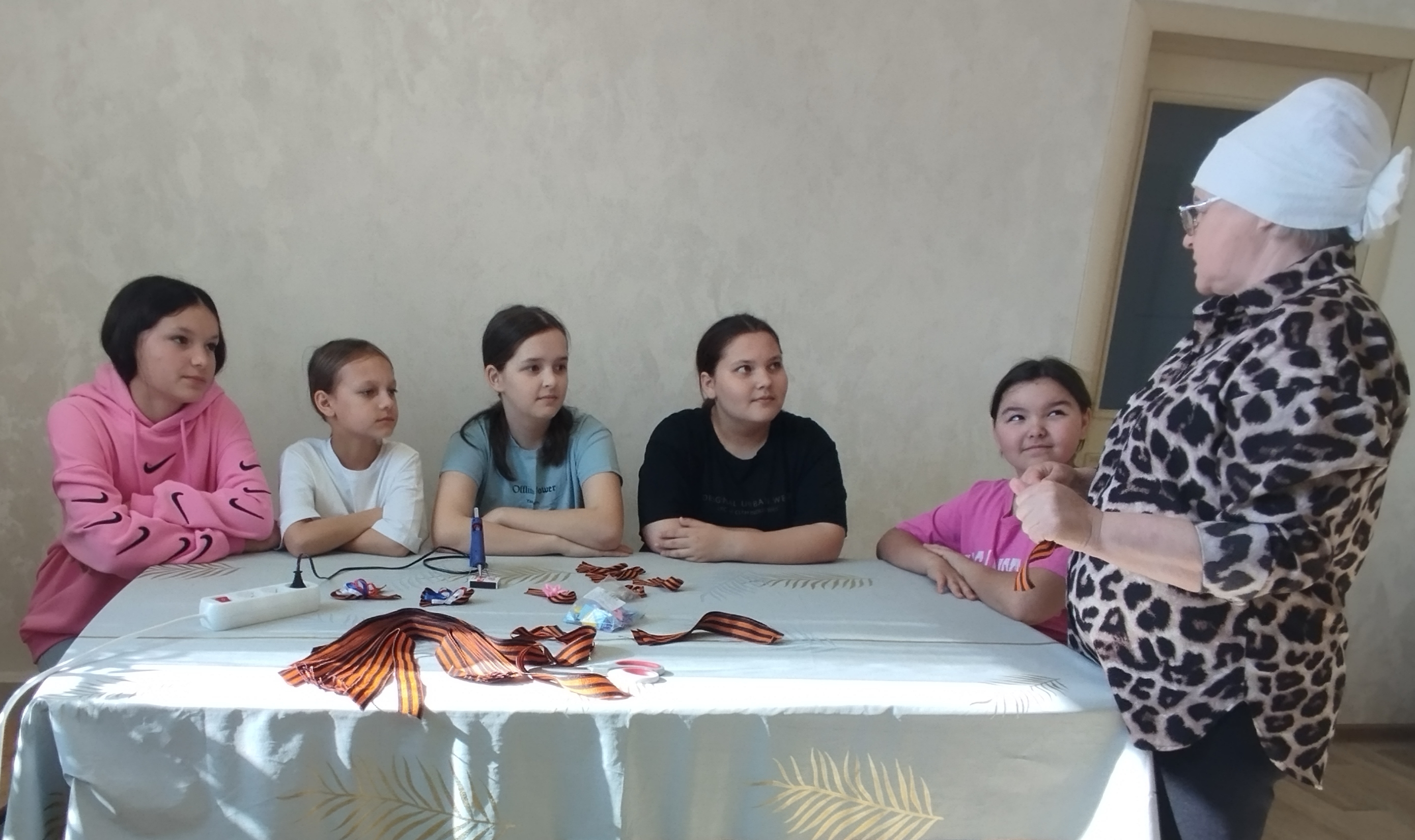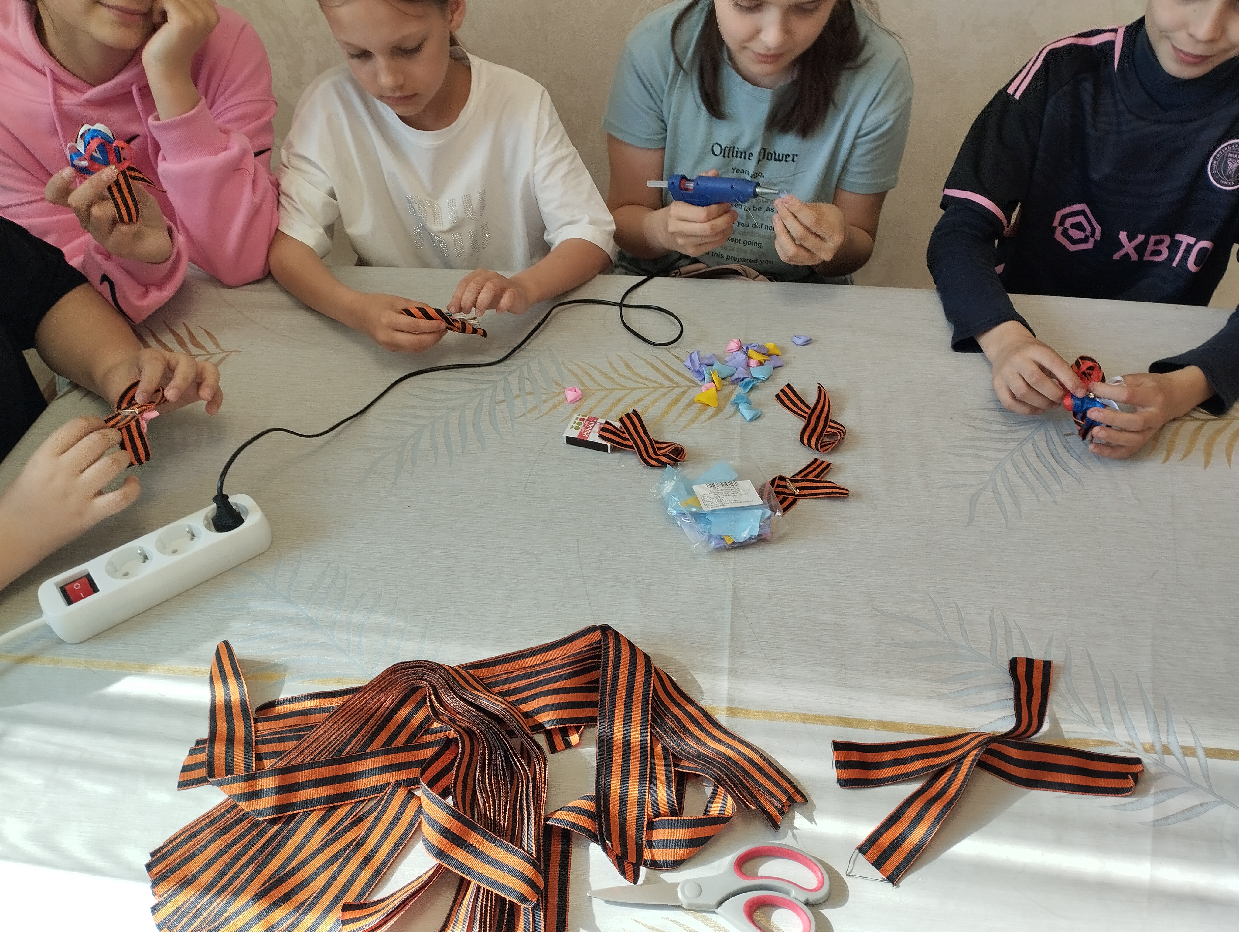 Участники мероприятия познакомились с историей Георгиевской ленты, о её значении и применении вместе с советскими наградами, а также освоили технику создания брошей.