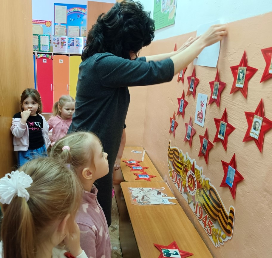В детском саду «Малыш» создали трогательную и значимую экспозицию с фотографиями участников Великой Отечественной войны. Каждая фотография – это не просто изображение, а живая история о героизме и самоотверженности тех, кто сражался за мирное небо над головой. Память о них всегда будет жить в наших сердцах.