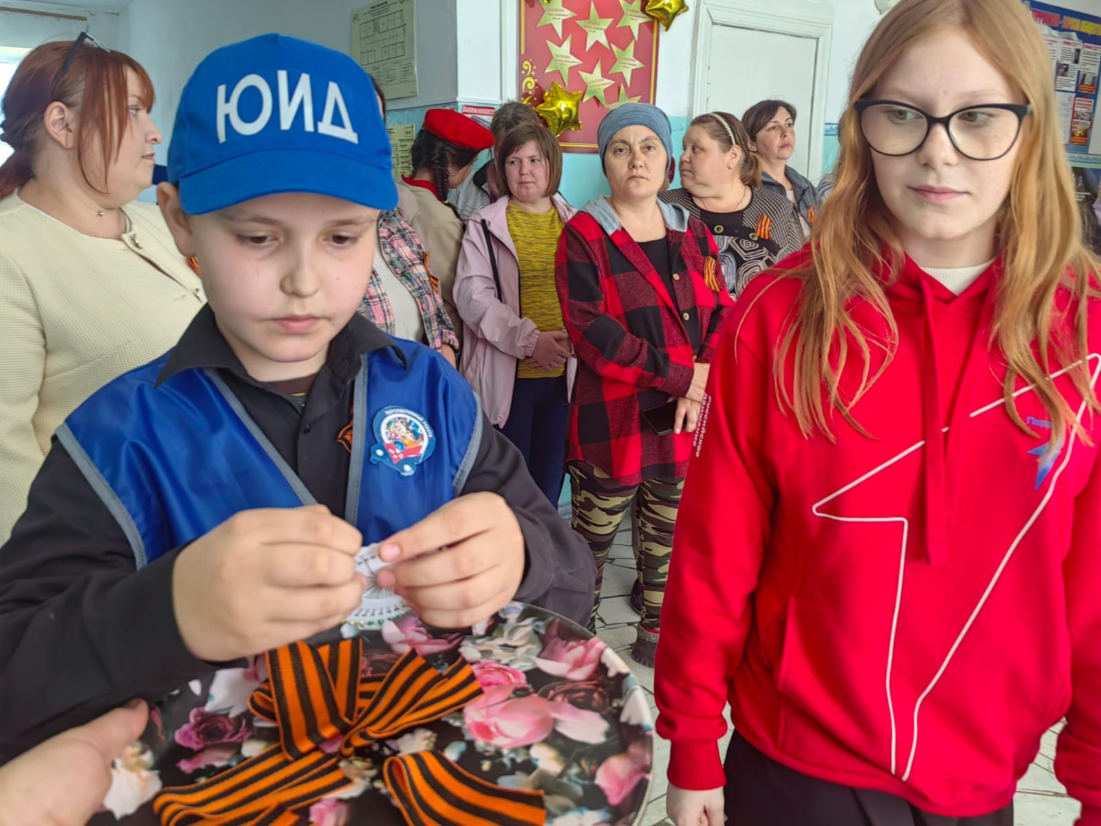 ✔️Перед началом собрания участники Движения Первых, юнармейцы и юидовцы провели для родителей акцию «Георгиевская ленточка», ознакомив с началом этой традиции и правилами ношения атрибута.
