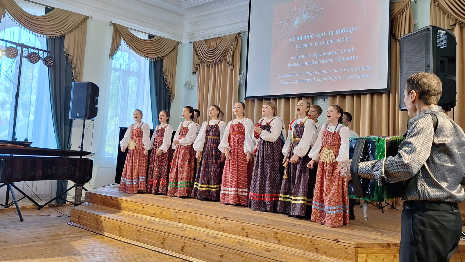 В заключении концерта всем залом под аккомпанемент ансамбля народных инструментов была исполнена песня "День Победы".