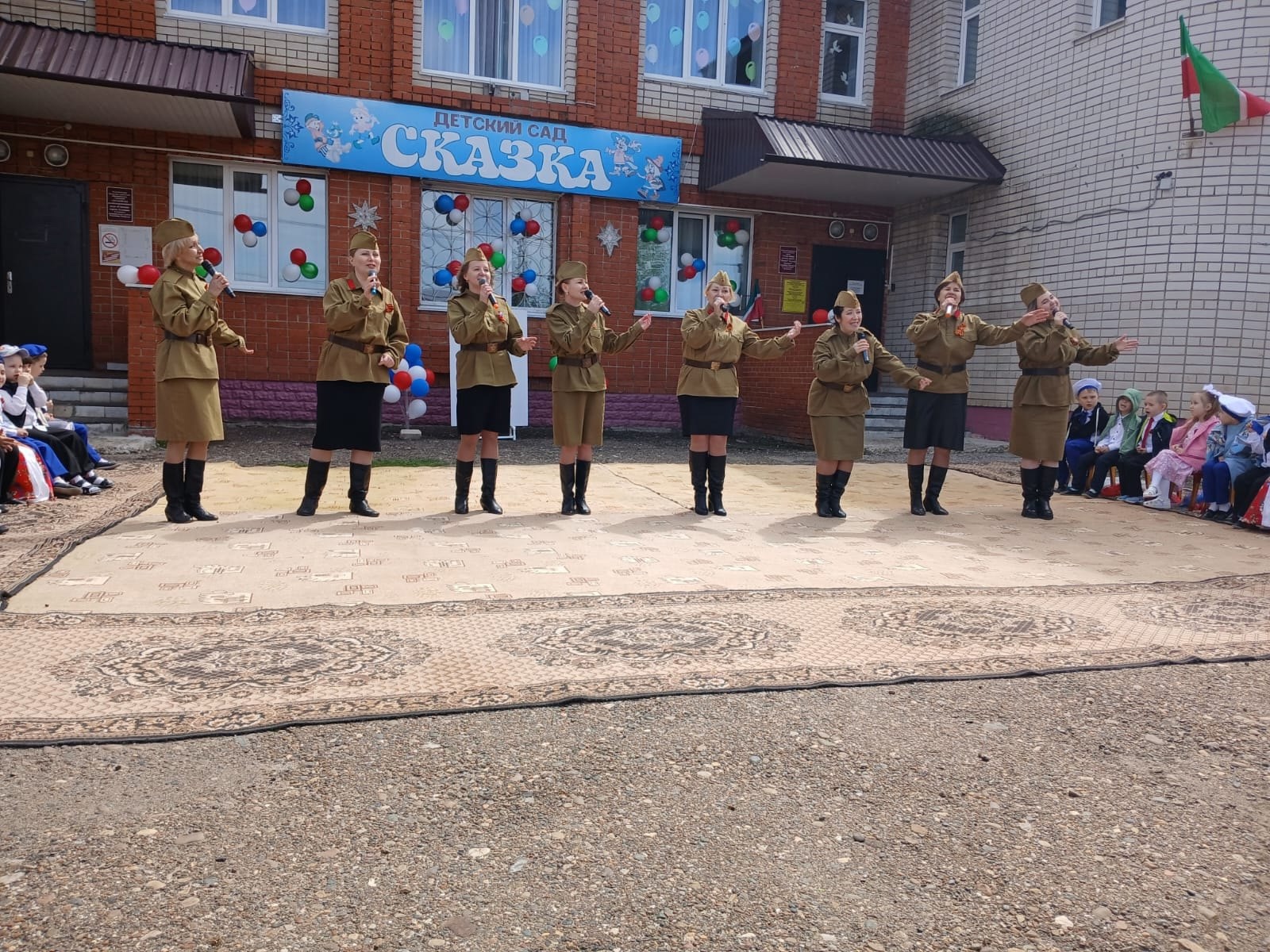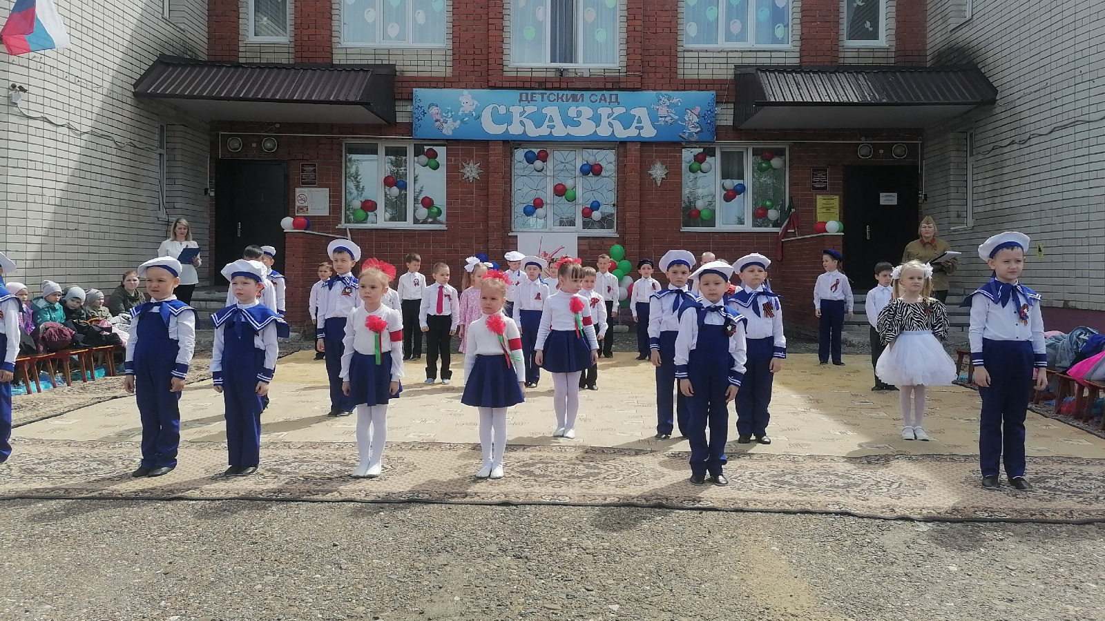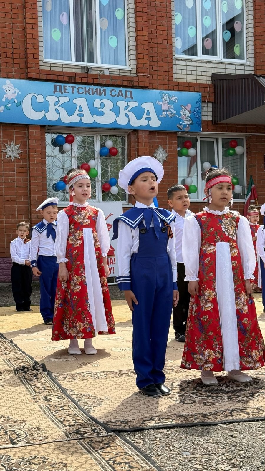 Сегодня воспитанники и сотрудники детского сада «Сказка» представили для жителей южного микрорайона города концертную программу «Весна Победы», посвященную 80-летию великой Победы. Дети подготовили стихи, танцы и песни. Минутой Молчания дети и взрослые почтили память всех героев, погибших на полях сражений.