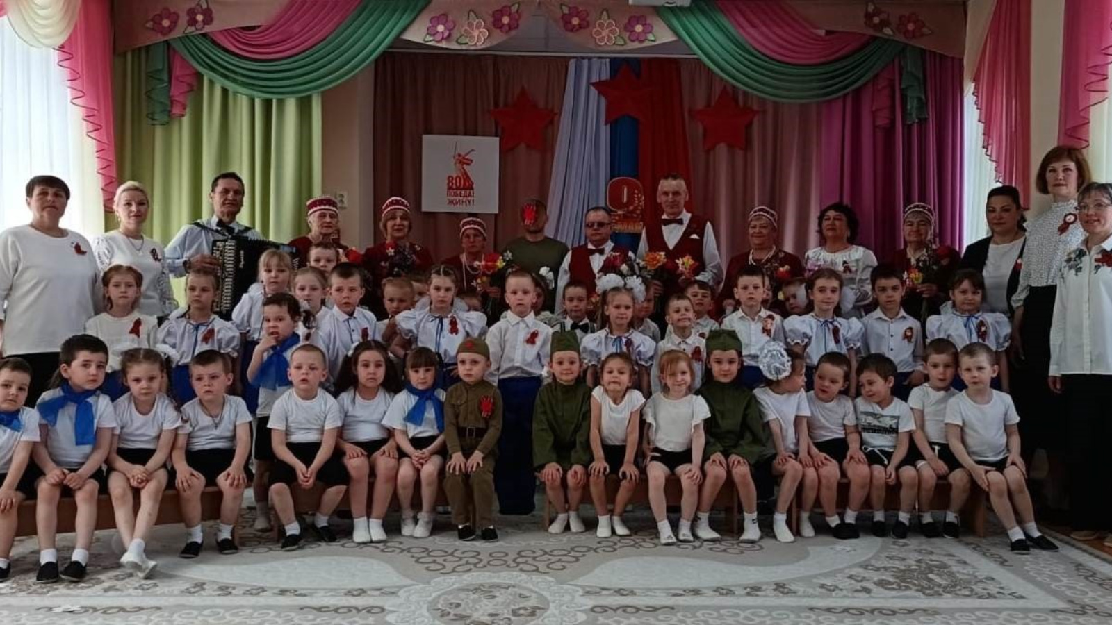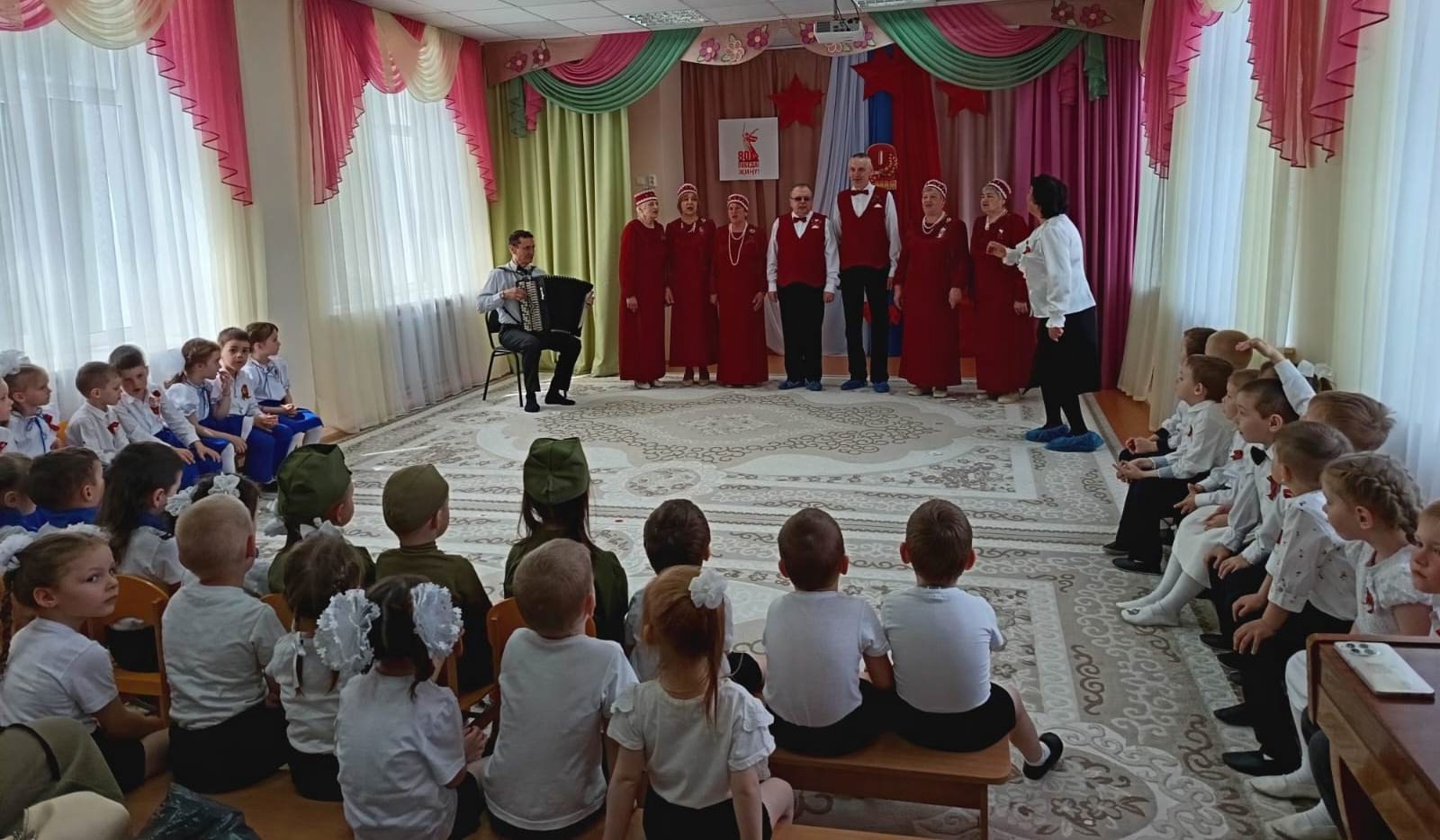 В детском саду прошёл праздник посвящённый 80-й годовщине Дня Победы. Гостями праздника стали участник СВО и участники Народного хора ветеранов войны и труда Тетюшского района.