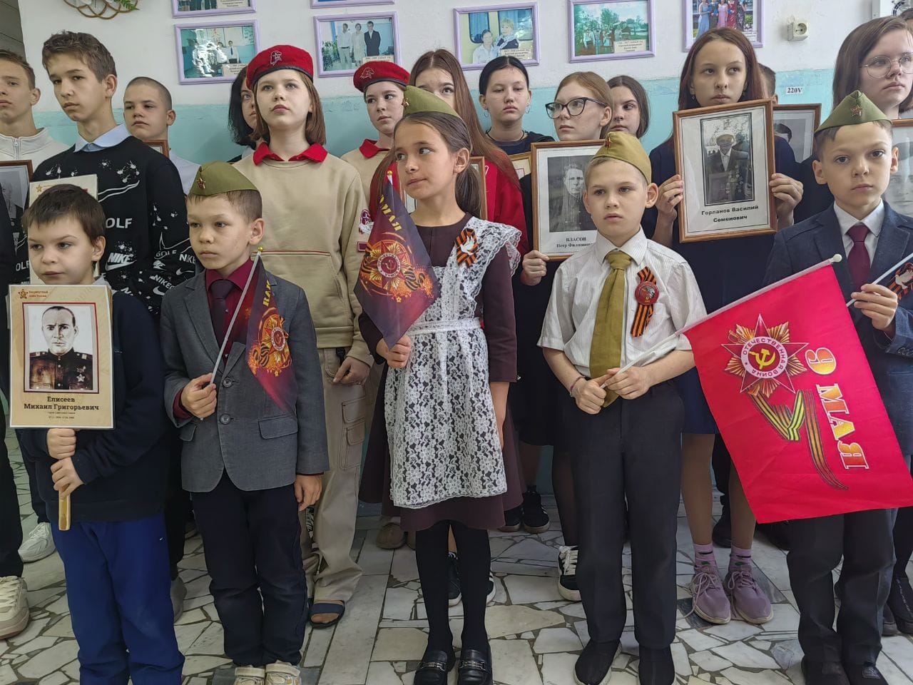 🔸Участники мероприятия отдали дань памяти своим близким, односельчанам, защищавшим Родину в годы Великой Отечественной войны, и прошли с их портретами по территории образовательной организации.