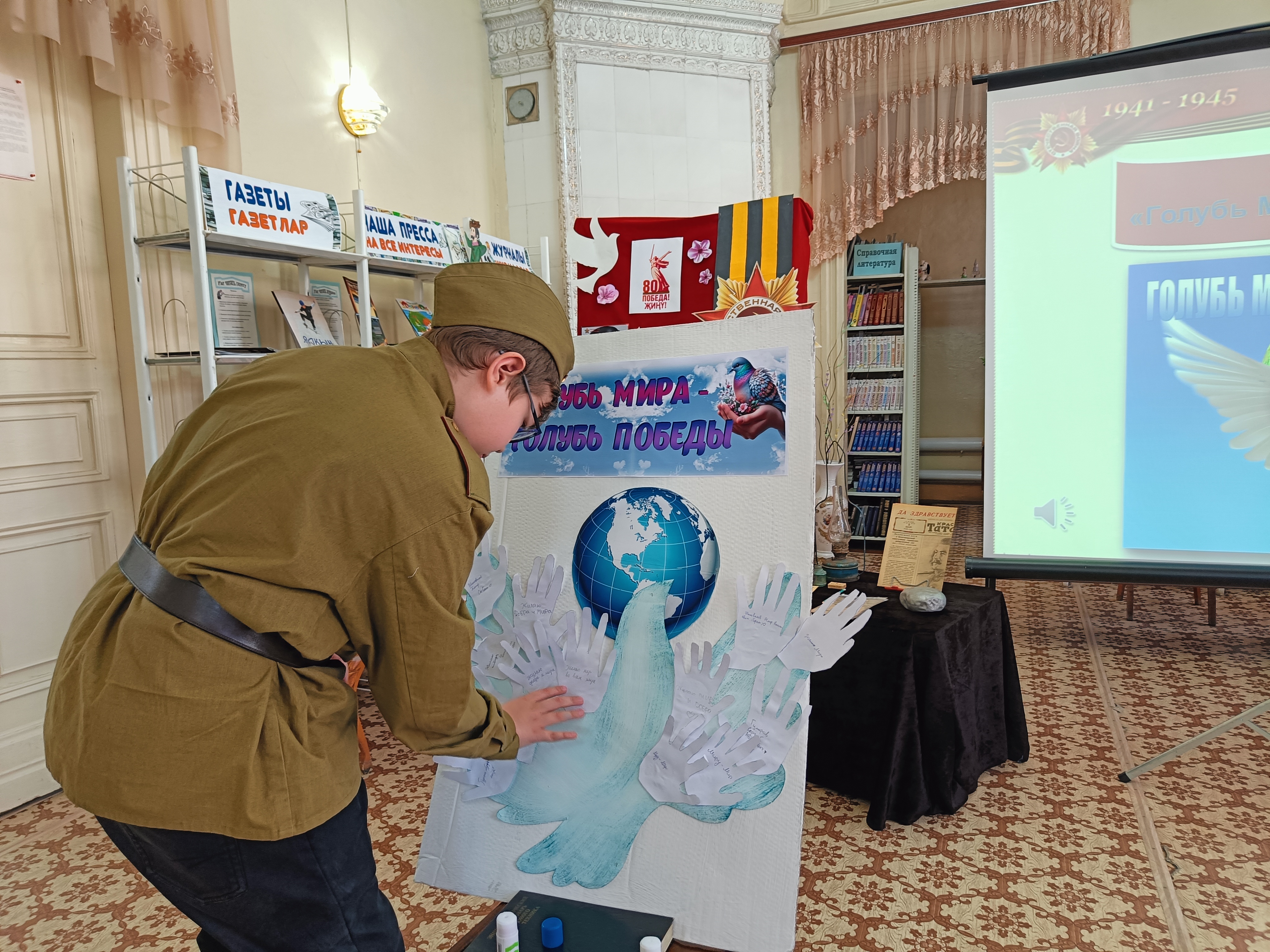В год 80-летия Победы в Великой Отечественной войне проходит Всероссийская акция «Голубь Мира – Голубь Победы». Голубь — один из самых известных символов мира. Этот образ возник после Второй мировой войны и стал олицетворением надежды на мирное сосуществование народов. Сотрудники Детской библиотеки присоединились к этой значимой акции, в рамках которой организовали мастер-класс по созданию голубя Мира, где участники могли обрисовать свои ладошки, вырезать их из бумаги и написать на них свои пожелания о мире. Эти пожелания затем приклеивались к картине голубя, символизируя мир и надежду.