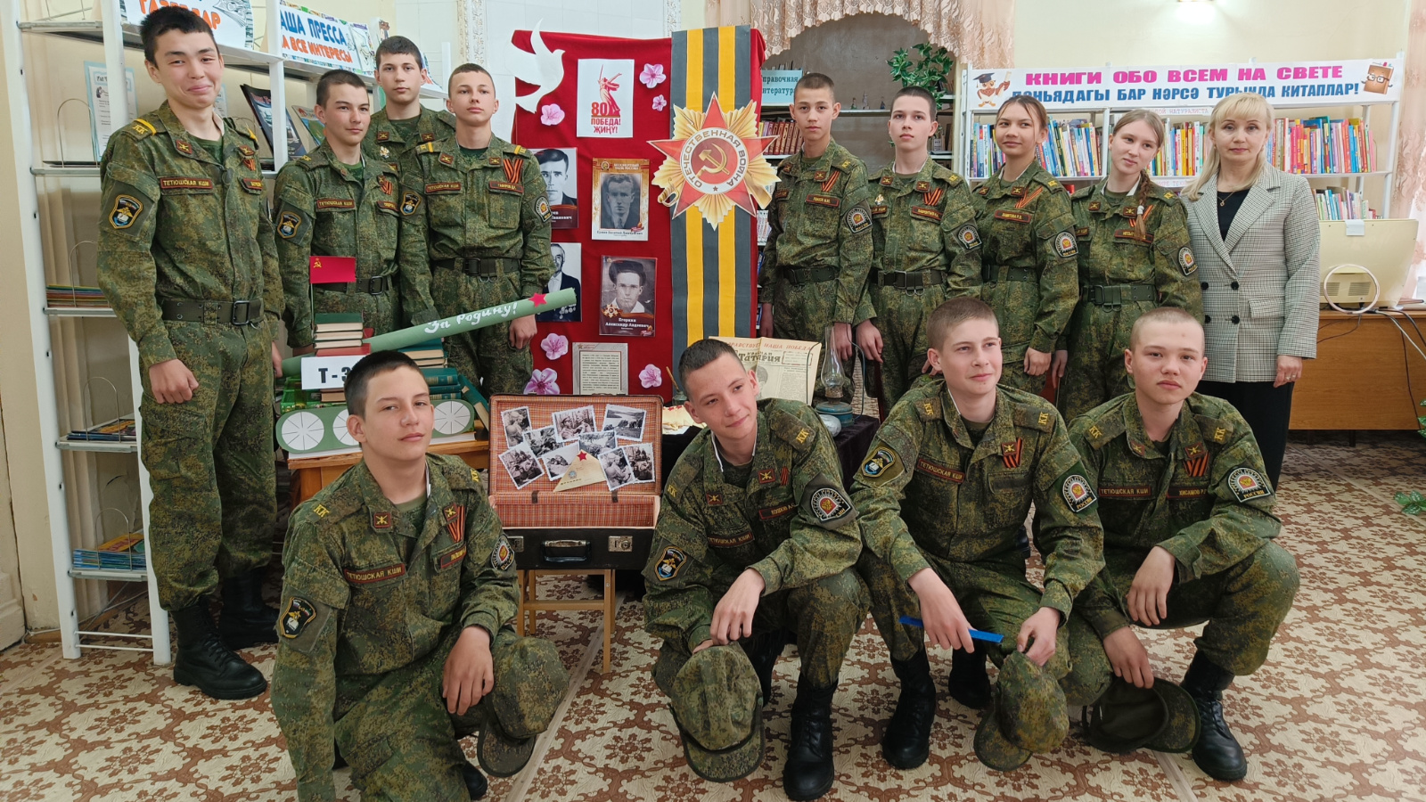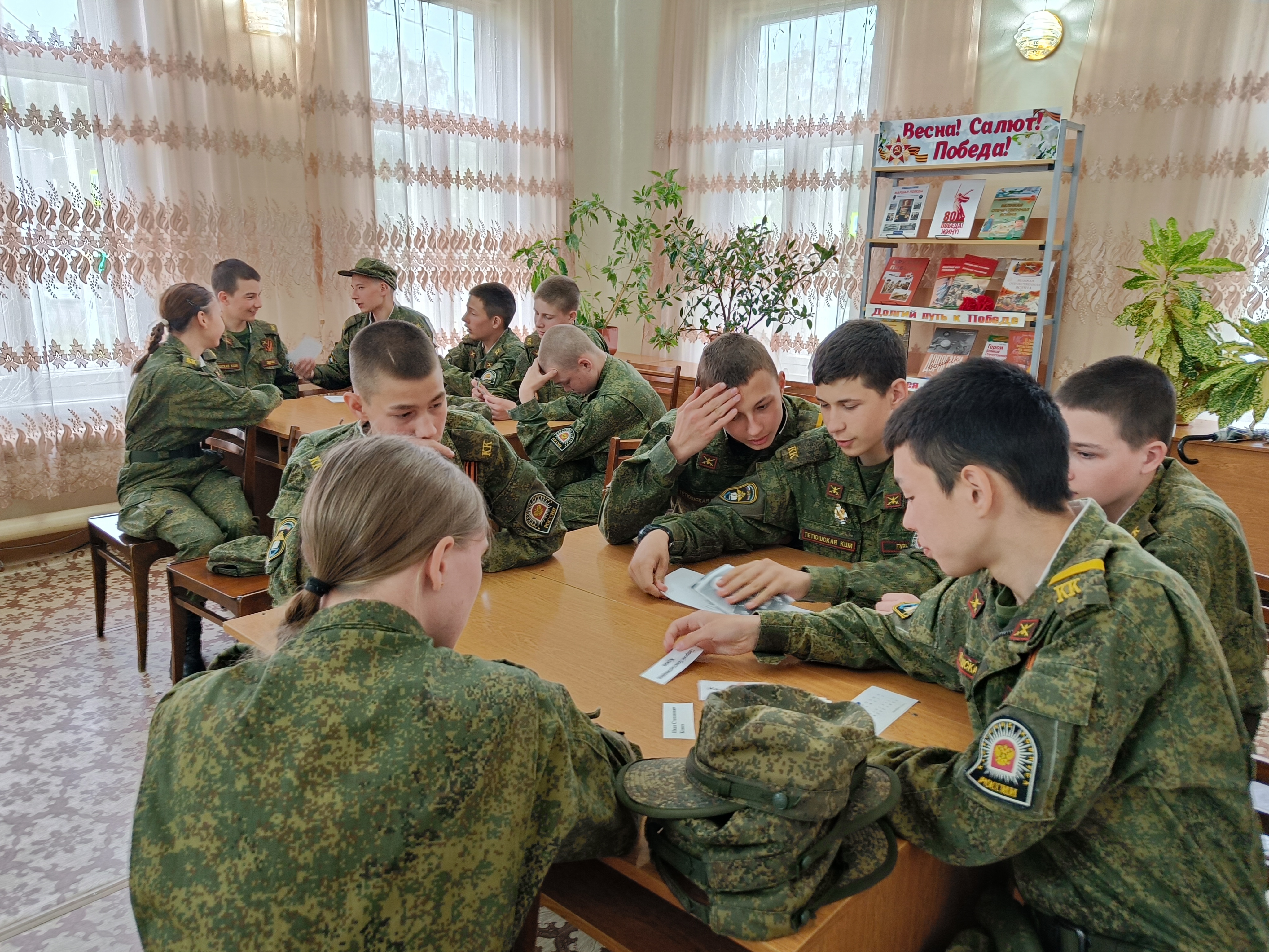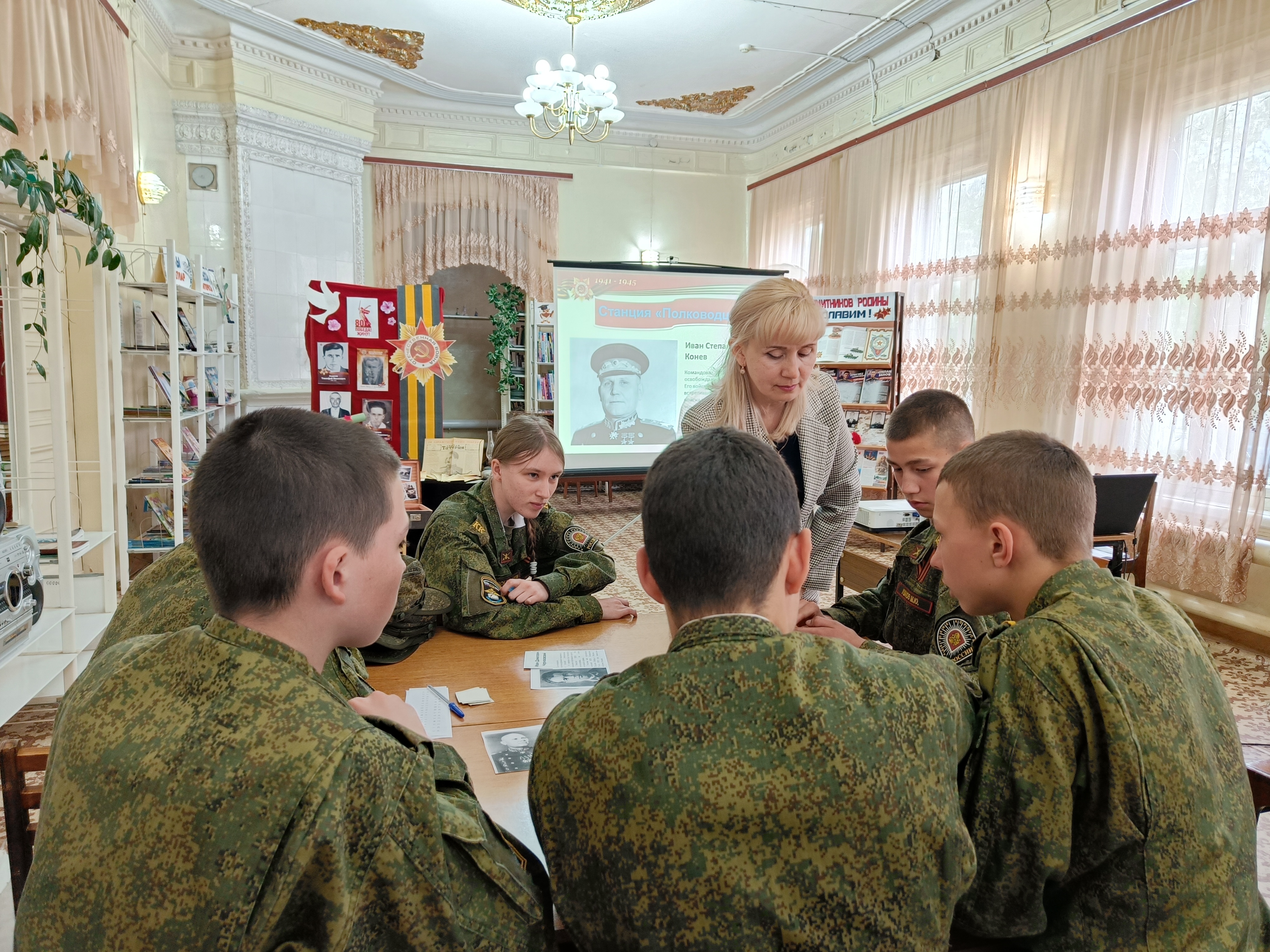 В Детской библиотеке прошла историко - патриотическая игра «Мы – правнуки Победы», посвященная 80 – летию Победы в Великой Отечественной войне. Ее участниками стали учащиеся 8 класса ГБОУ «Тетюшская кадетская школа-интернат имени Хапаева В.А.» (воспитатель Грудцина С.И.). Разделившись на две команды, ребята прошли испытания на знание истории Великой Отечественной войны, которые состояли из нескольких этапов: «Вести с фронта», «Полководцы Победы», «Разведка доложила точно…», «Фильмы о войне», «Память народа». В ходе мероприятия кадеты продемонстрировали свои знания, а также получили много новой интересной информации о событиях той героической поры.