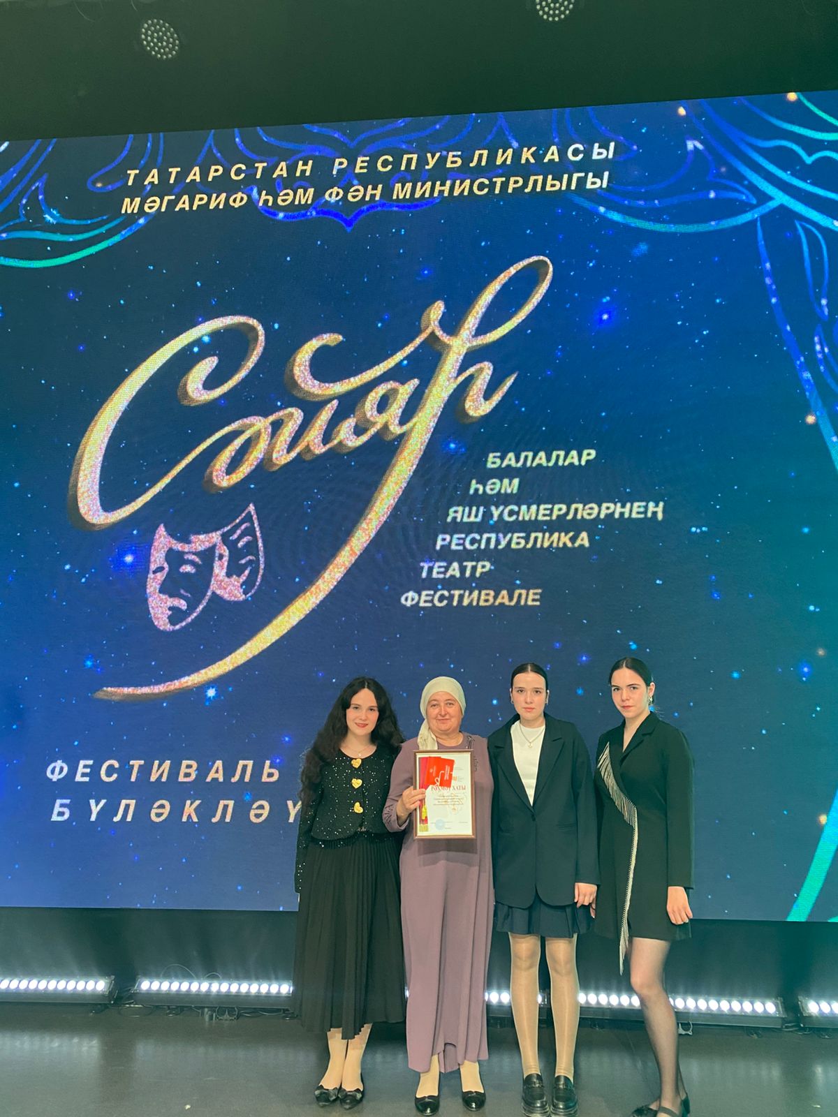 Поздравляем участников театр-студии «Хаят» МБОУ «Тетюшская татарская СОШ» и их художественного руководителя, Сагирову Гульзар Наримановну, с победой в республиканском фестивале детских и юношеских театров «Сайяр»! Церемония награждения прошла в Татарском государственном академическом театре кукол «Әкият» в рамках национального проекта «Молодежь и дети» и подпроектов «Все лучшее детям», «Мы вместе».