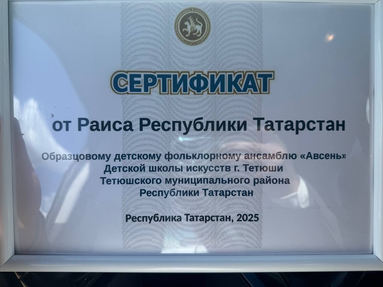 24 мая на фестивале русского фольклора и культуры "Каравон" Раис Татарстана Рустам Миниханов вручил Образцовому фольклорному ансамблю "Авсен" сертификат на пошив костюмов.