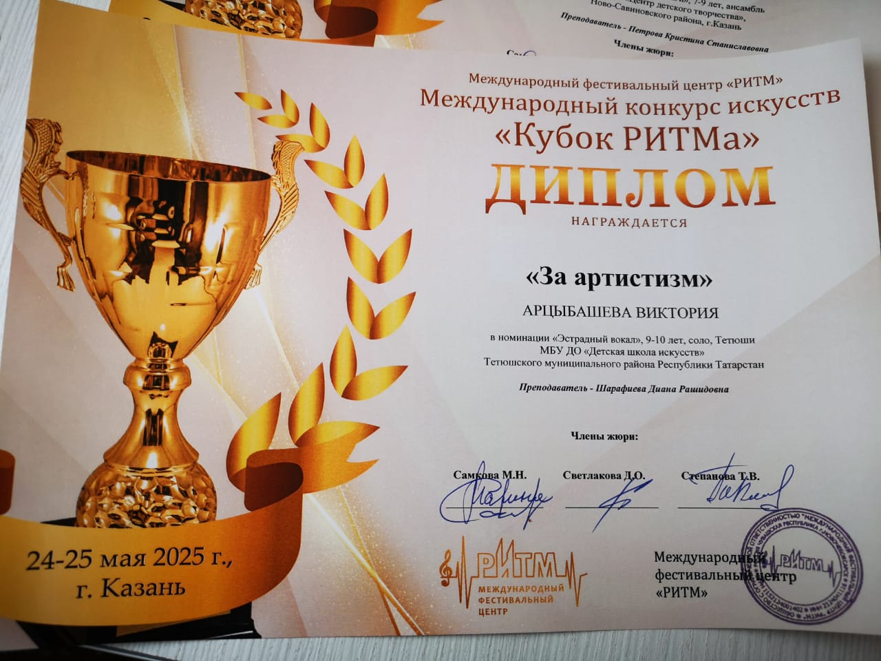 25 мая в г.Казань прошел Международный конкурс искусств «Кубок РИТМа».
