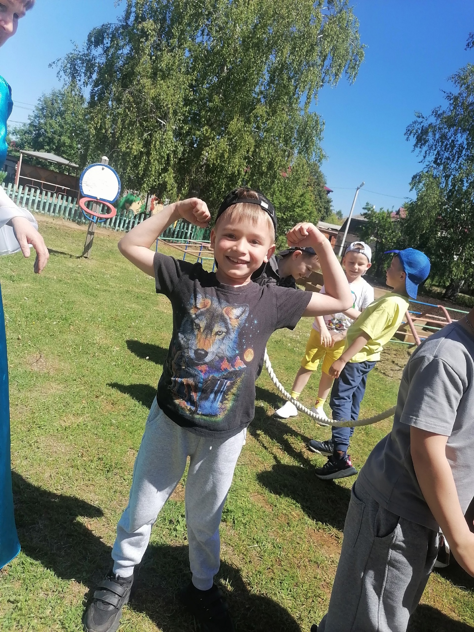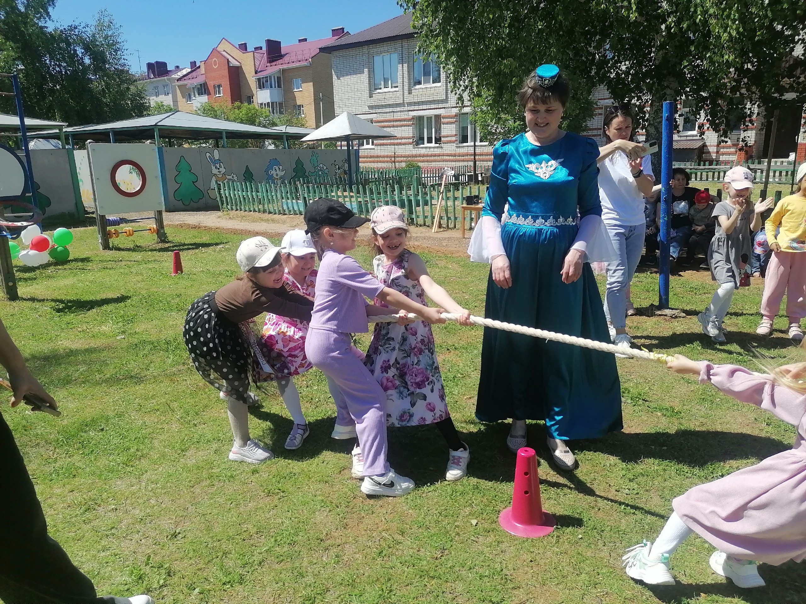 Ребята участвовали в соревнованиях: «Перетягивание каната»; «Конные скачки»; «Бег с ведерками, наполненными водой», «Разбей горшок», «Бег с ложками».