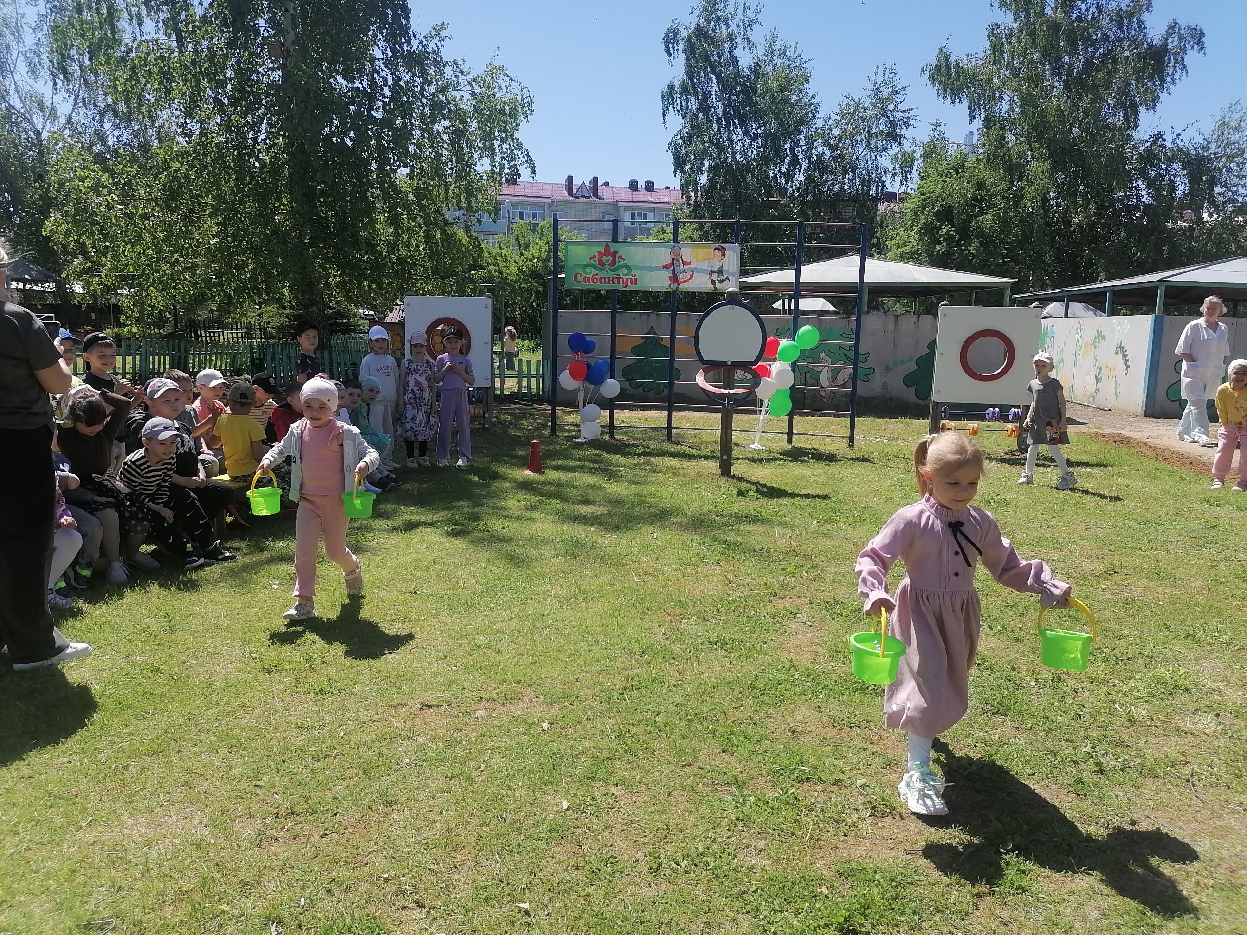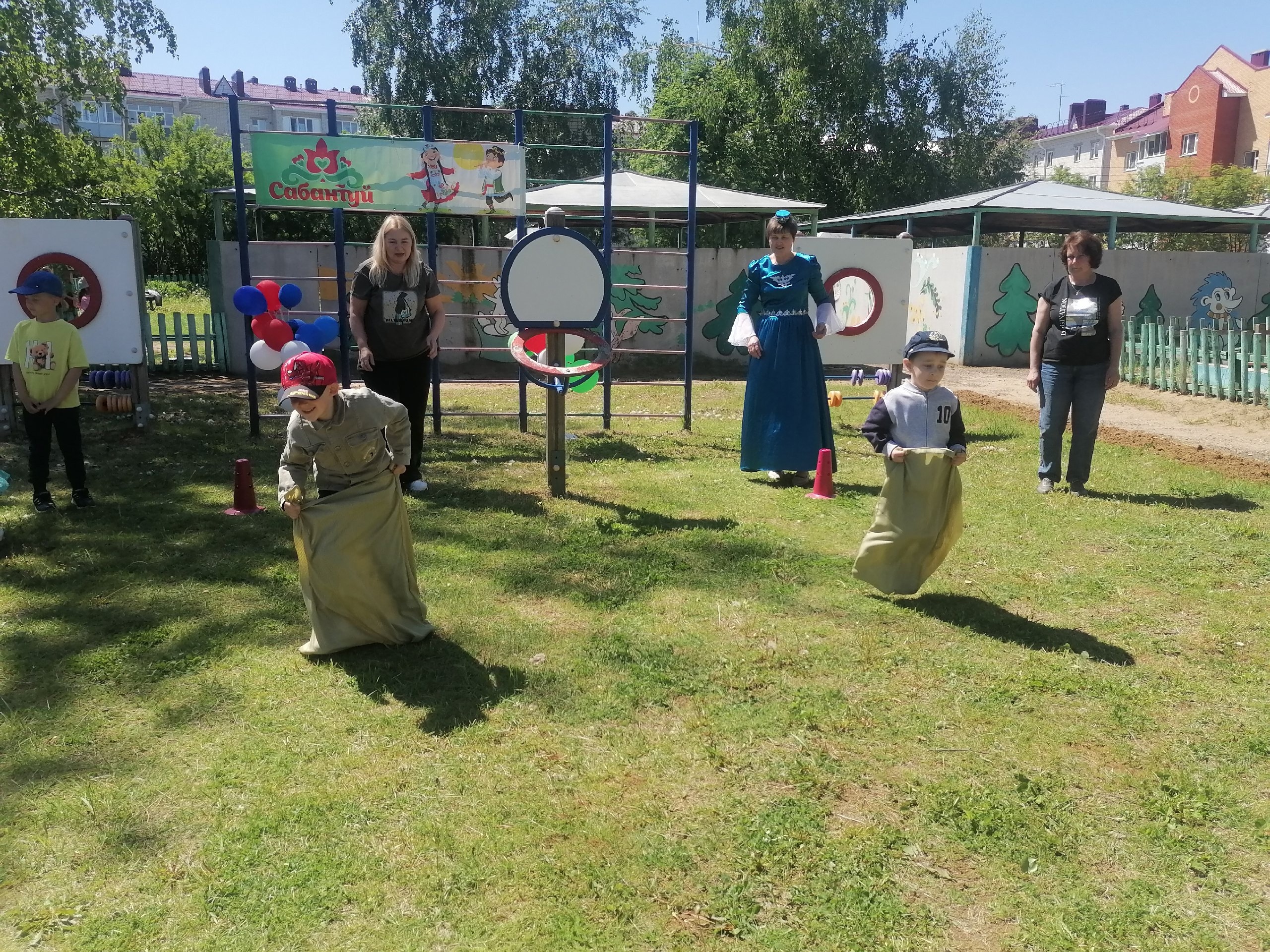 Вот и мы в нашем любимом садике отметили этот замечательный праздник. На нем ребята смогли продемонстрировать свою силу, ловкость, смекалку. Праздник начался с парада. Педагог А.В Абдурахманова приветствовала гостей Сабантуя песней «Сабантуйга барабыз».