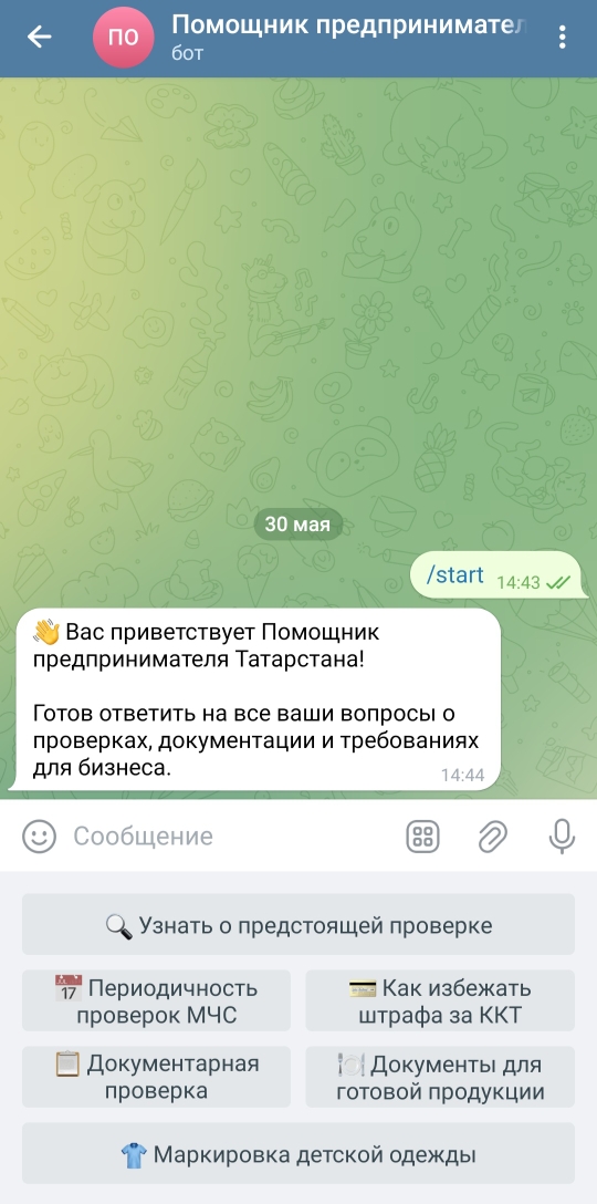 С помощью Чат-бота предприниматель сможет подготовиться к предстоящей проверке инспектора и вести диалог с искусственным интеллектом, получить алгоритм поведения во время проверки, обоснование представления документов, которые запрашивает инспектор. Предприниматели могут оставить отзыв о качестве полученной консультации, что позволяет выявлять области, требующие улучшения и повышать эффективность цифрового сервиса в целом.