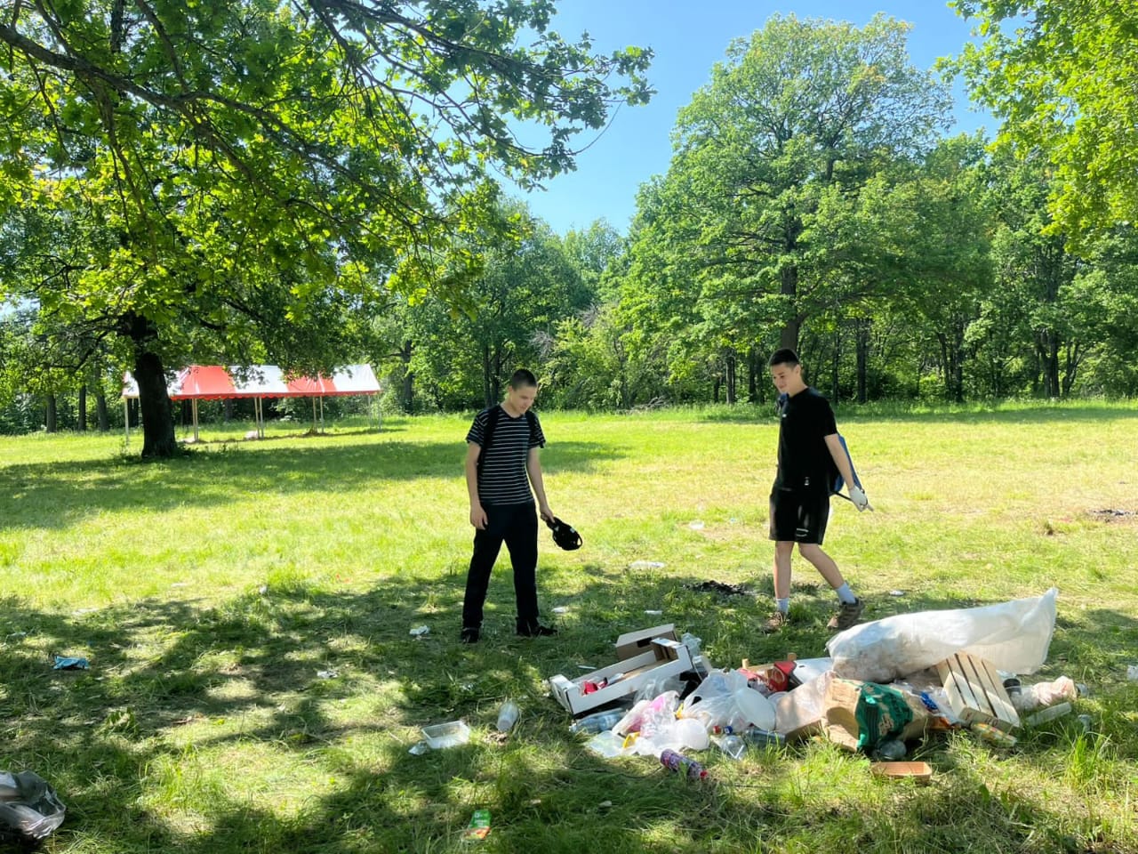 После завтрака ребята приняли участие в экологическом субботнике на территории Сабантуя, где очистили территорию от сухого мусора, внося свой вклад в благоустройство родного города.