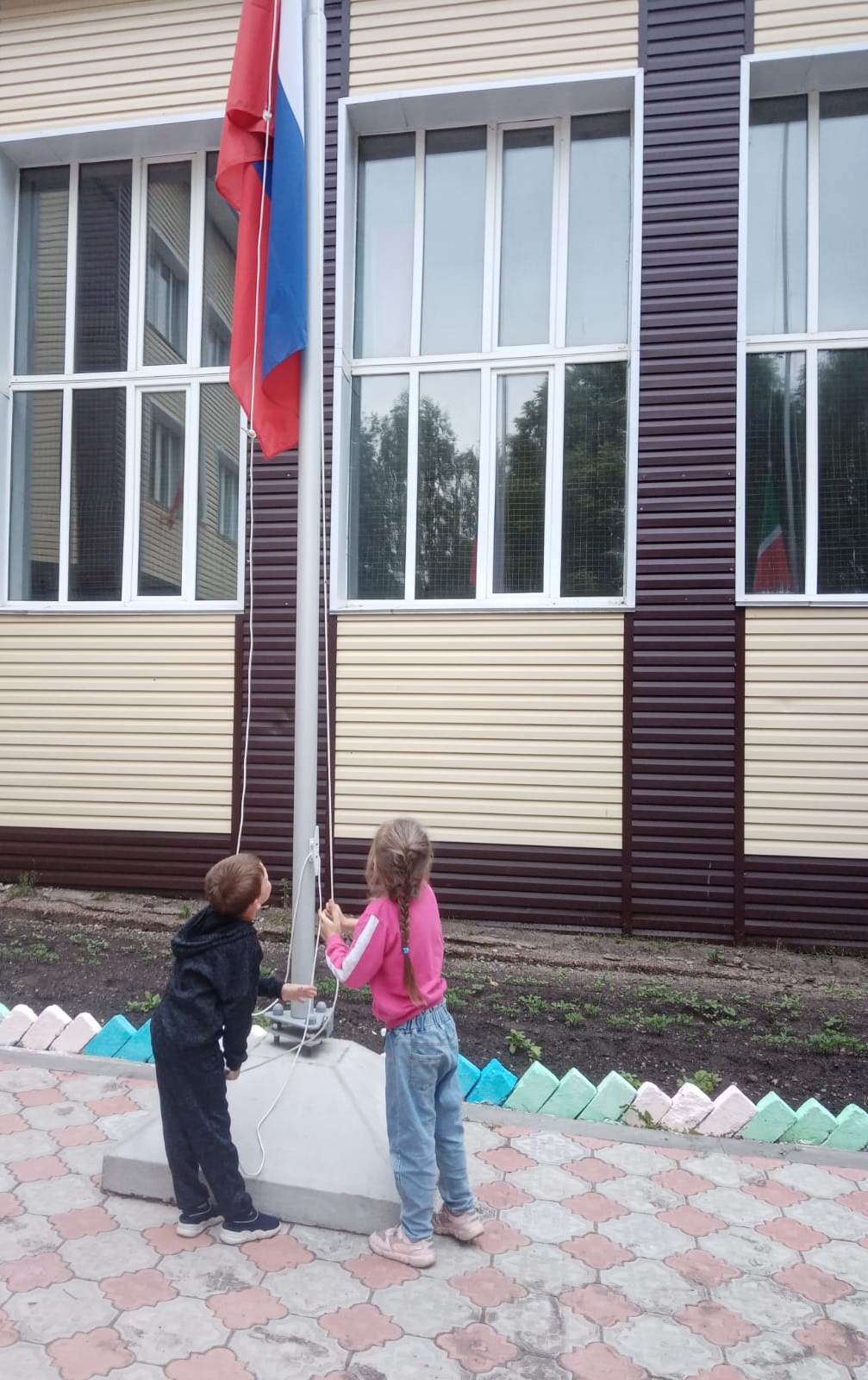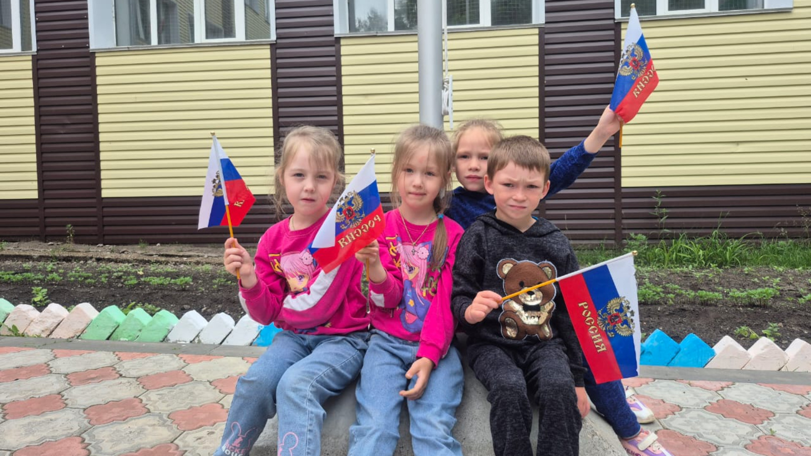 В этот важный для всех нас день состоялось церемониальное поднятие Государственного флага Российской Федерации. Честь торжественно поднять флаги досталась воспитанникам детского сада «Ромашка».