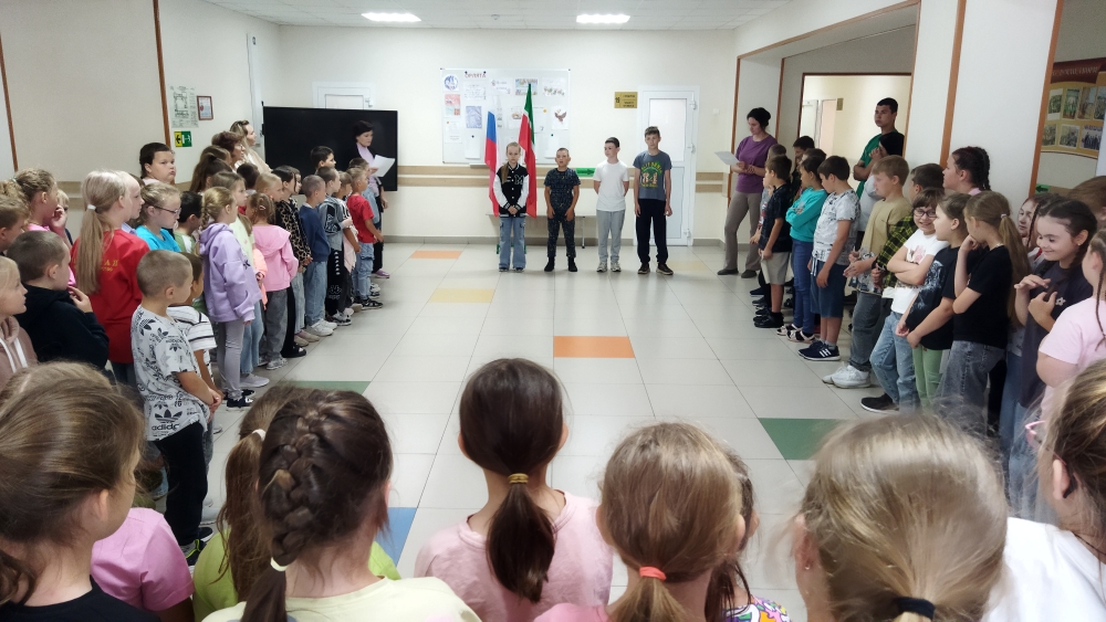 День был начат с торжественной линейки открытия лагерной смены с поднятием флагов России и Республики Татарстан. Увлекательно и задорно прошла игра – вертушка по станциям «Мы единая команда». В ней ребята продемонстрировали все свои творческие, художественные, музыкальные и спортивные возможности всей командой.