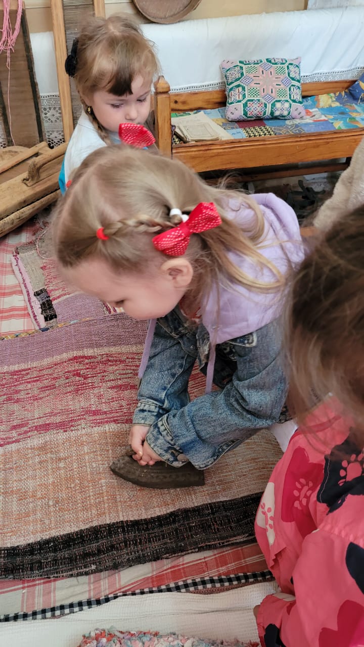 Сегодня в детском саду «Малыш» был проведен тематический день «Путешествие в прошлое». Дети продолжи знакомство с бытом и промыслом народов, проживающих в Республике Татарстан. Воспитанники побывали в музее детского сада.