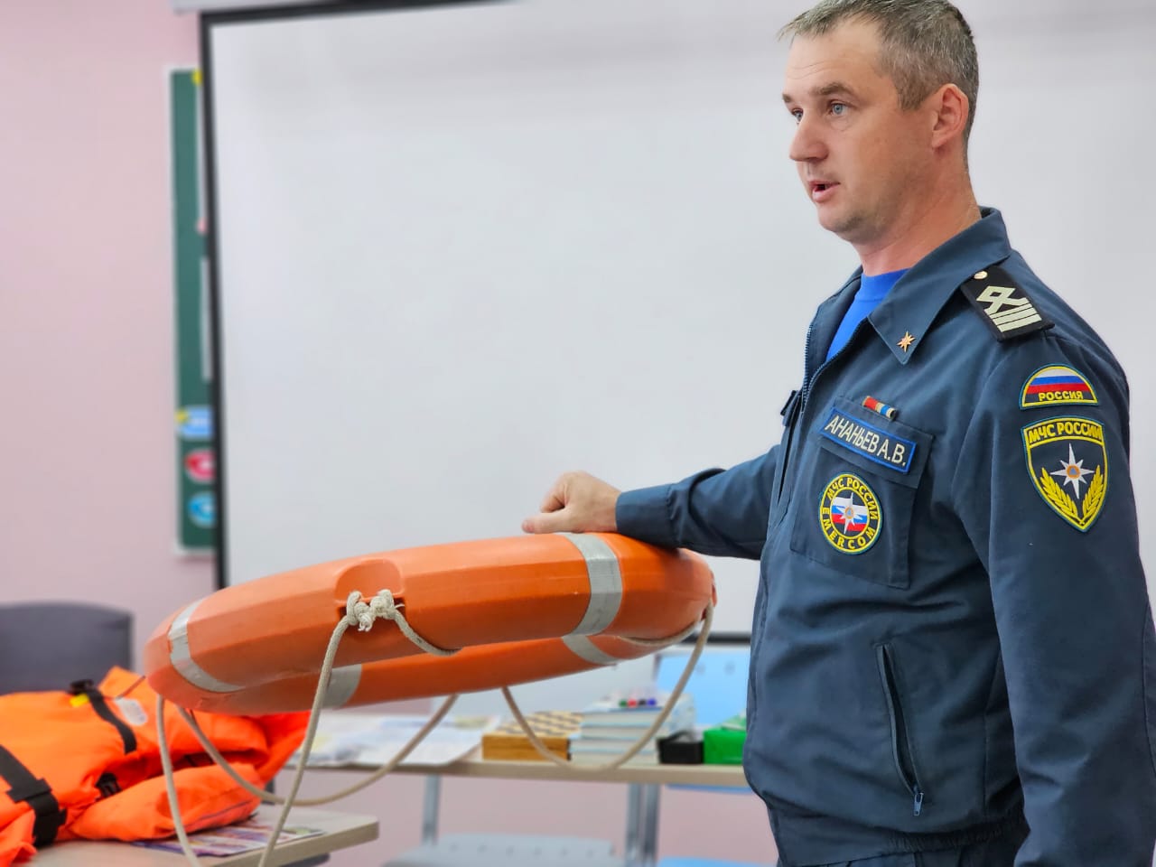 Особое внимание в этот день было уделено вопросам безопасности на воде. С детьми встретился Алексей Владимирович Ананьев, руководитель Камско-Устьинского инспекторского участка Центра ГИМС ГУ МЧС России по РТ. Он рассказал ребятам о правилах поведения на воде, основных опасностях и способах оказания помощи пострадавшим.