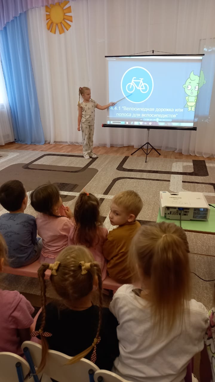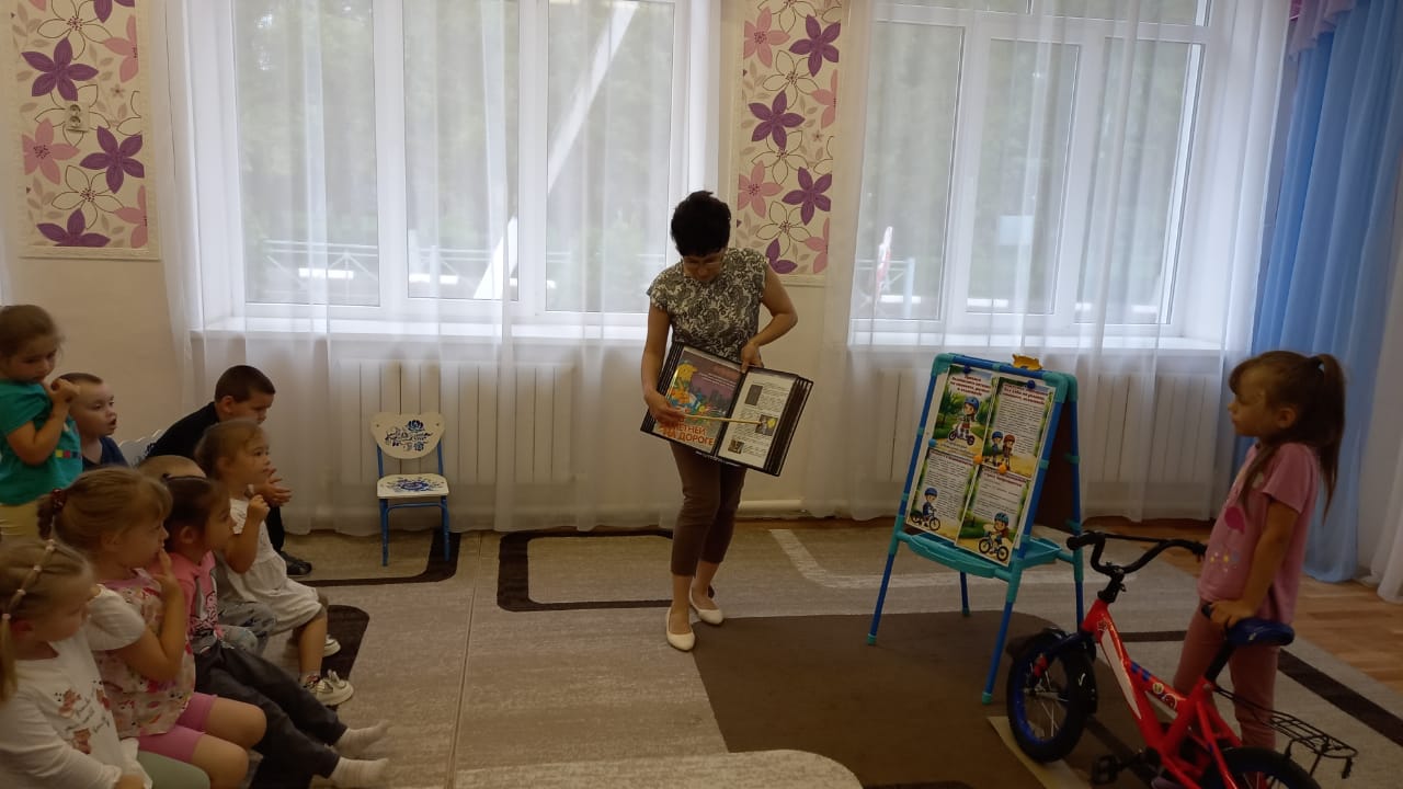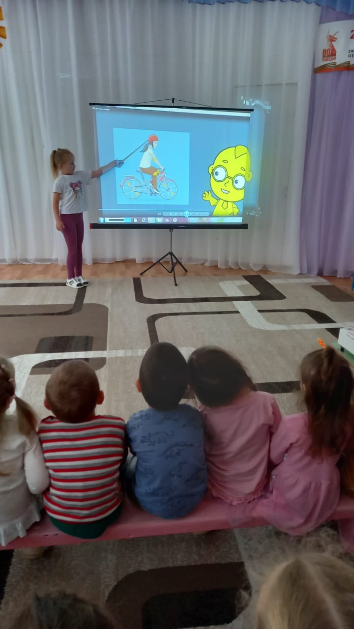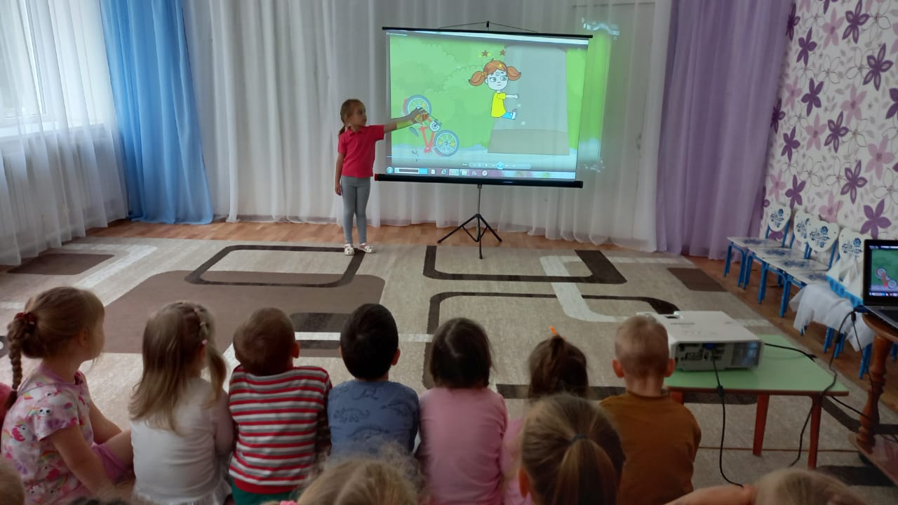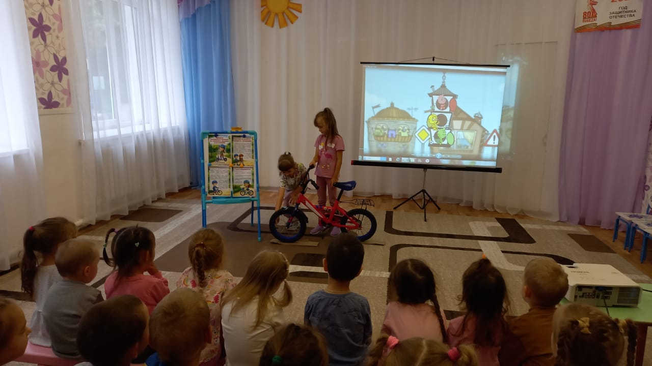 В ходе бесед ребята узнали о том, что велосипед является таким же транспортным средством, как и автомобиль, поэтому велосипедисту нужно соблюдать правила дорожного движения, и строго следовать всем указаниям, дорожных знаков, светофоров. А также иметь средства индивидуальной защиты: шлем, налокотники, наколенники. Для закрепления материала, был организован посмотр мультфильма «Азбука безопасности на дороге».