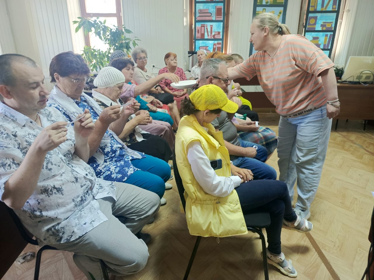 Председатель Общества слепых поделилась, что в этот день организация отмечает свой столетний юбилей. Сотрудники библиотеки пожелали здоровья, успехов в работе и дальнейшего продуктивного сотрудничества.