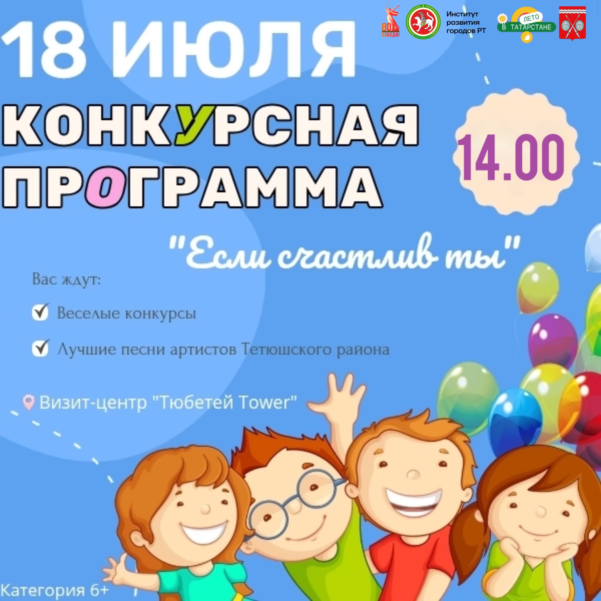 18 июля в 14.00 ч. в Визит-центре «Тюбетей Tower» г.Тетюши состоится конкурсная программа «Если счастлив ты», в рамках Республиканской программы «Лето в Татарстане». В программе вас ждут увлекательные игры и конкурсы, зажигательная музыка и море улыбок. Каждый участник сможет проявить свою креативность, талант и чувство юмора, погрузившись в атмосферу настоящего праздника счастья и радости!