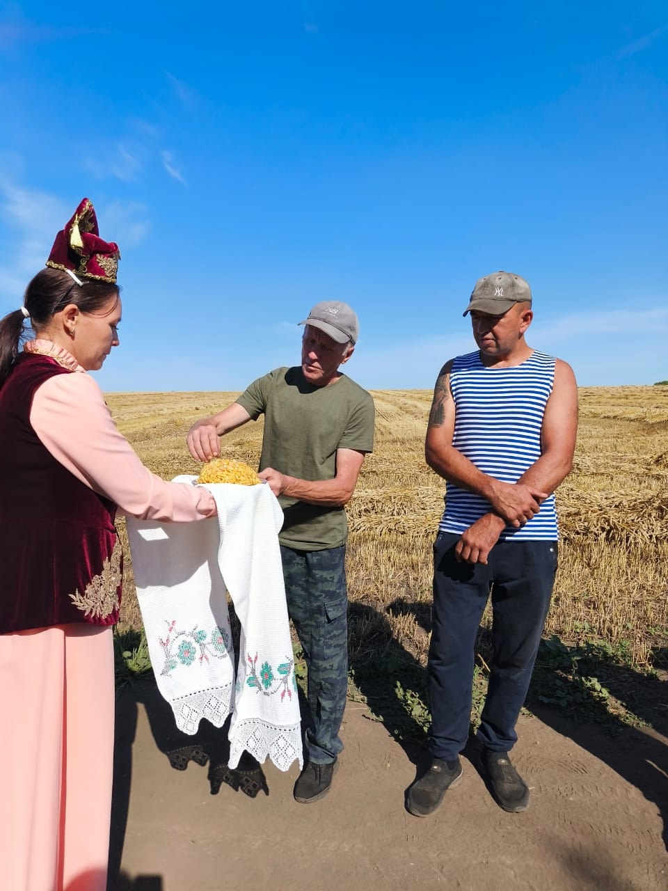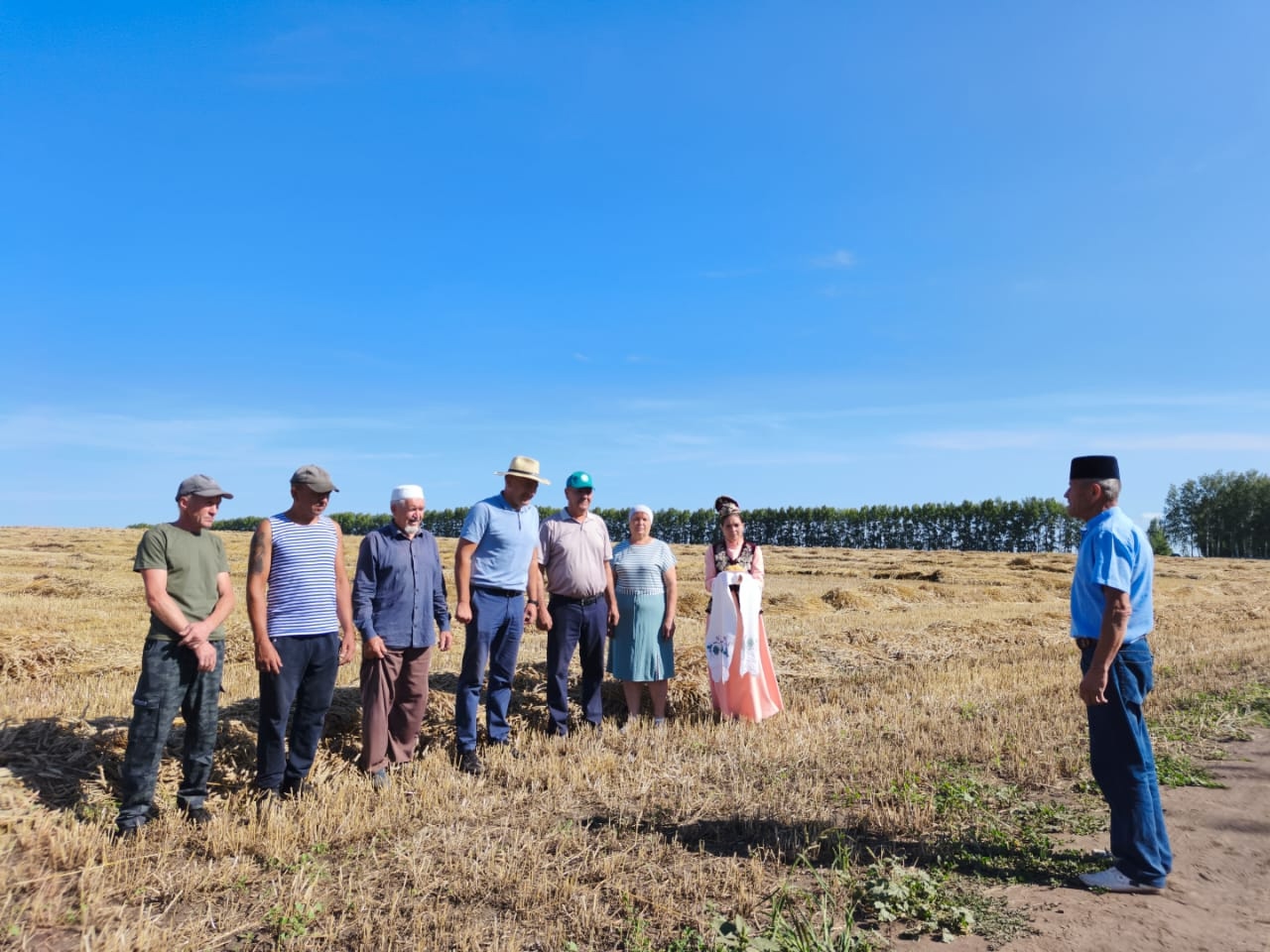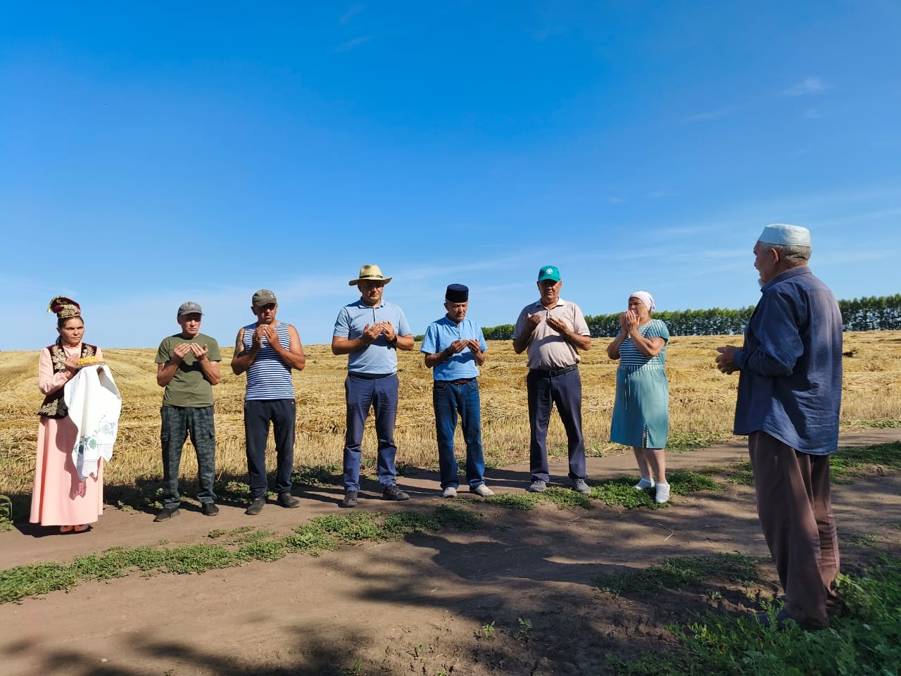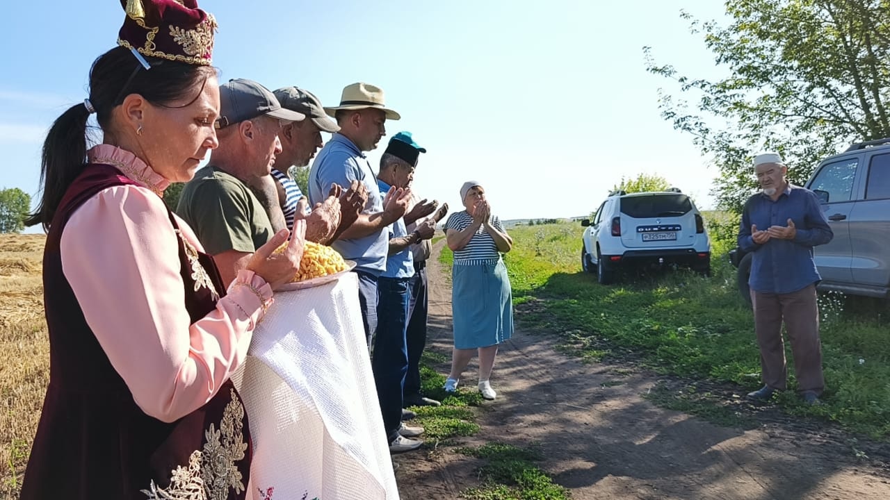 17 июля на полях КФХ"Загидуллин И. Р." началась уборка урожая. Перед выходом на уборочную мулла села совершил обязательную молитву (намаз).