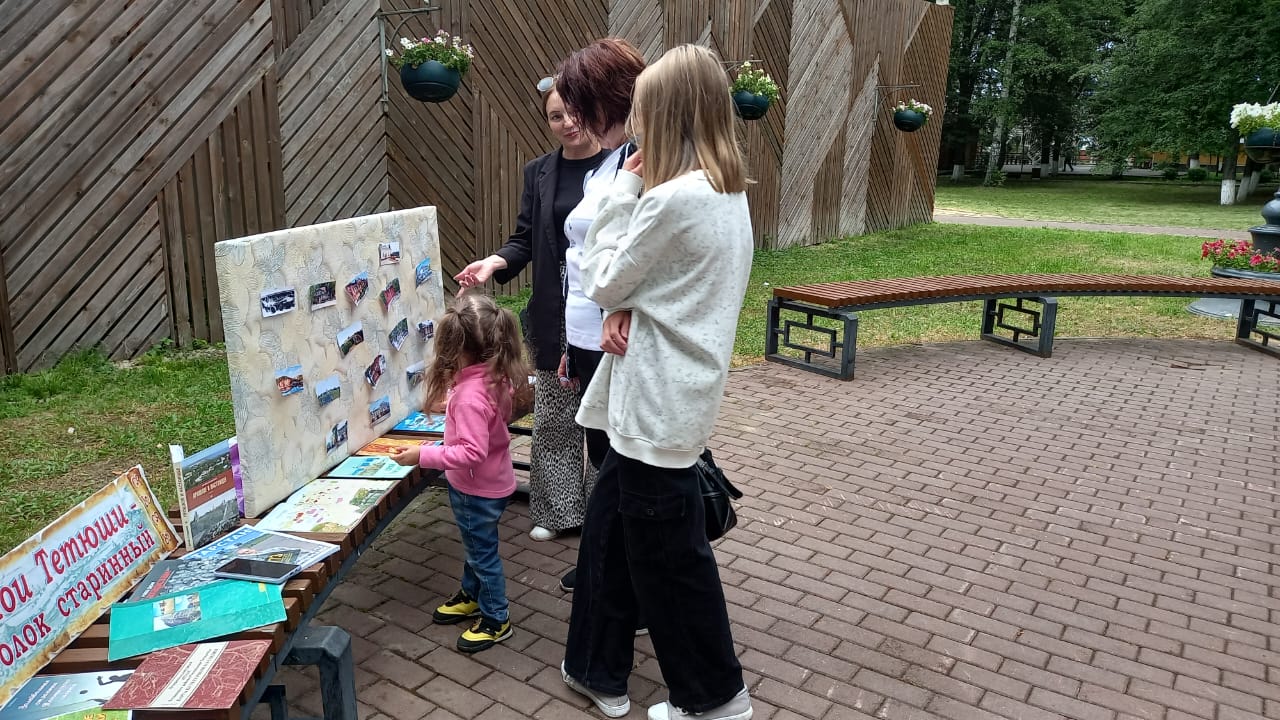 «Книжную полку» пополняли люди всех возрастов: дети, подростки, молодые люди, взрослые, бабушки и дедушки. Также на площадке была представлена книжная экспозиция «Мои Тетюши — городок старинный», где можно было ознакомиться с литературой о родном крае.