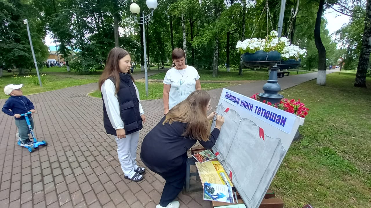 Для гостей и местных жителей библиотекари провели викторину о старинном городе Тетюши. Особенно популярной стала зона «Любимые книги тетюшан». Любой желающий мог оставить на стилизованной книжной обложке имя автора и название своей любимой книги.