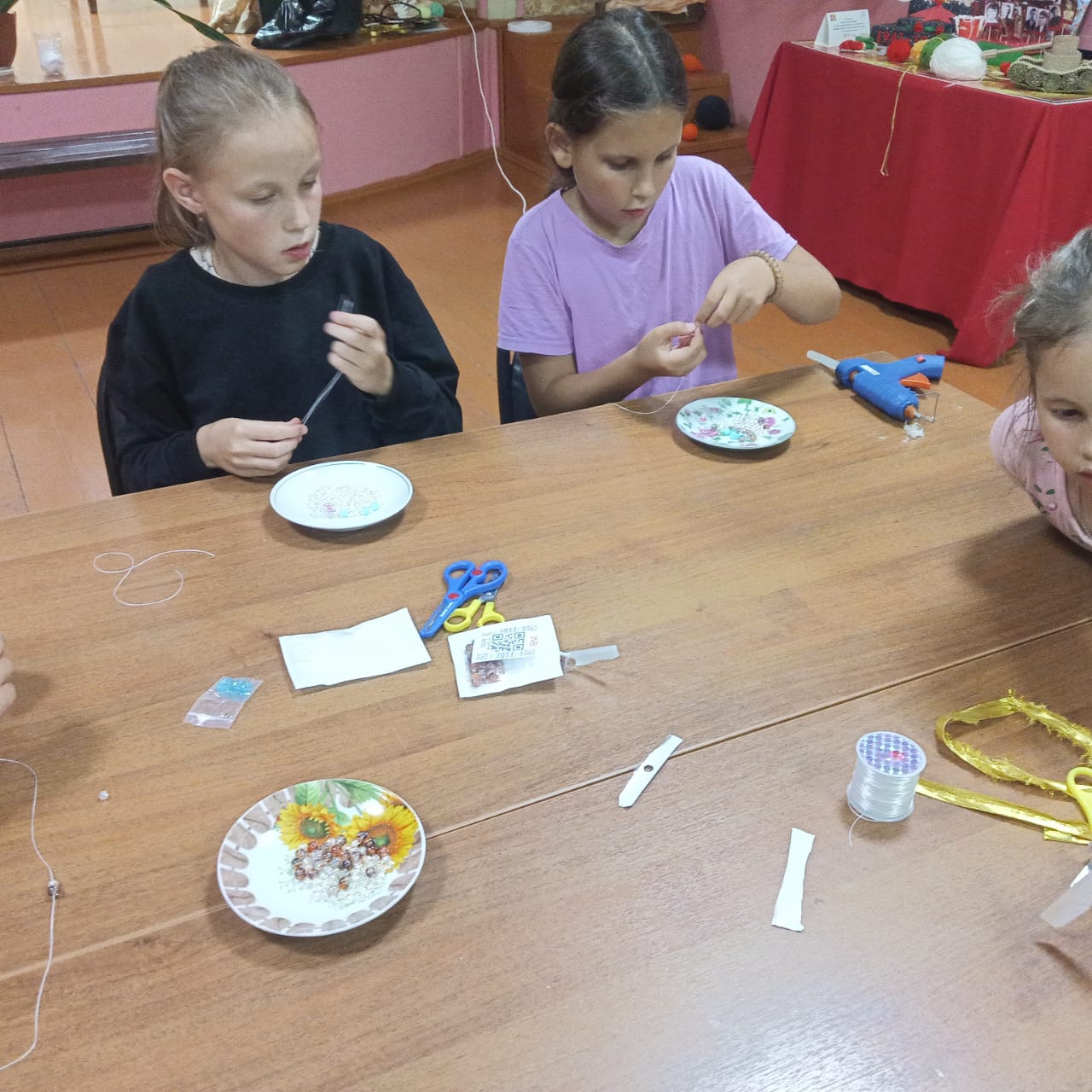 На мастер-классе дети узнали, какие материалы нужны для создания браслета, историю возникновения бусин и бисера, о первых украшениях ручной работы, а так же, как начать работу и как правильно завязать узел на тянущейся резинке. Особое внимание было уделено правильному закреплению застёжки, так как от этого зависит конечный результат и внешний вид украшения.