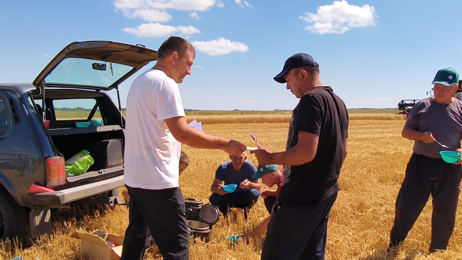 В честь участников уборочных работ прозвучали песни и тёплые пожелания.