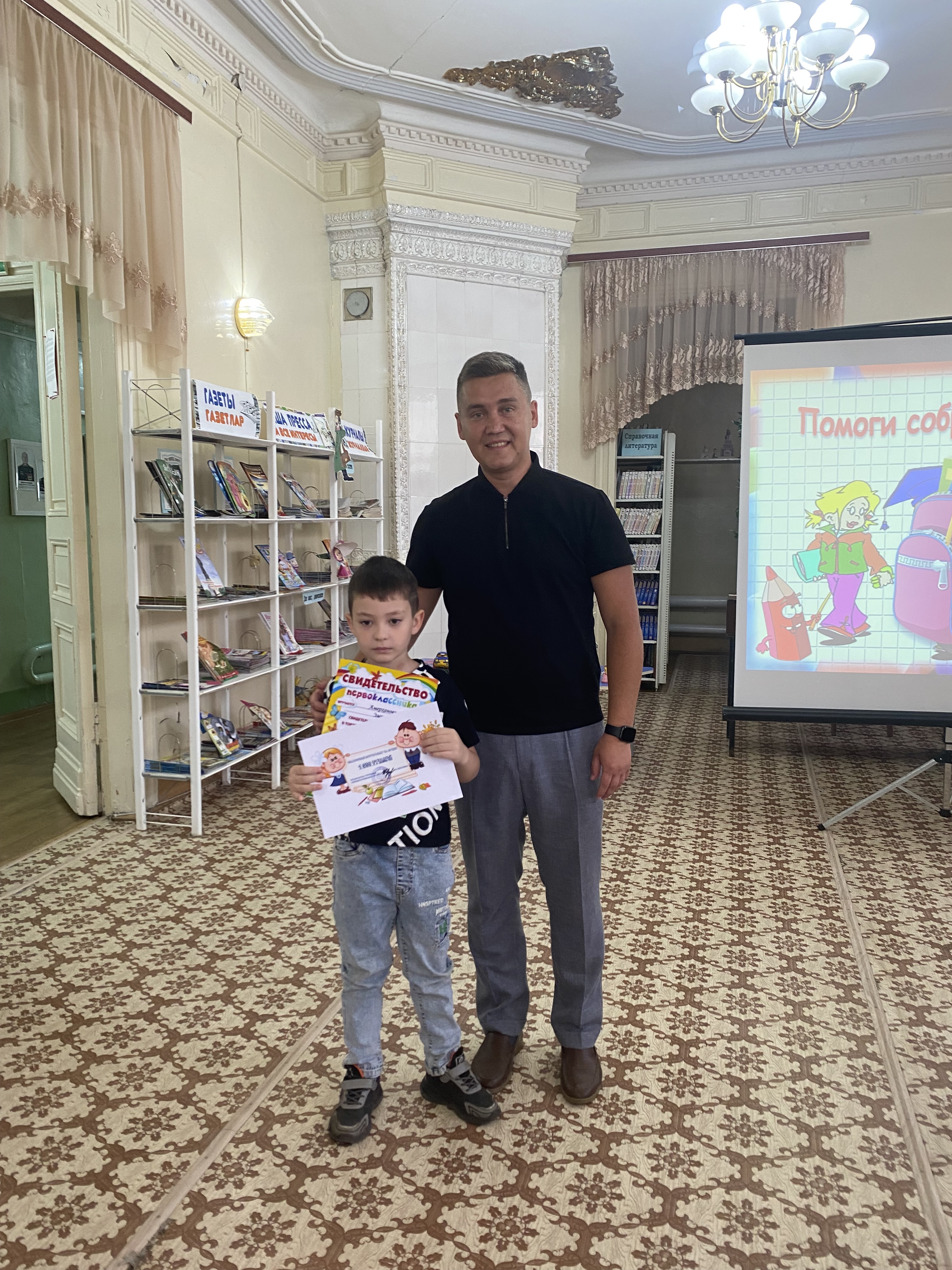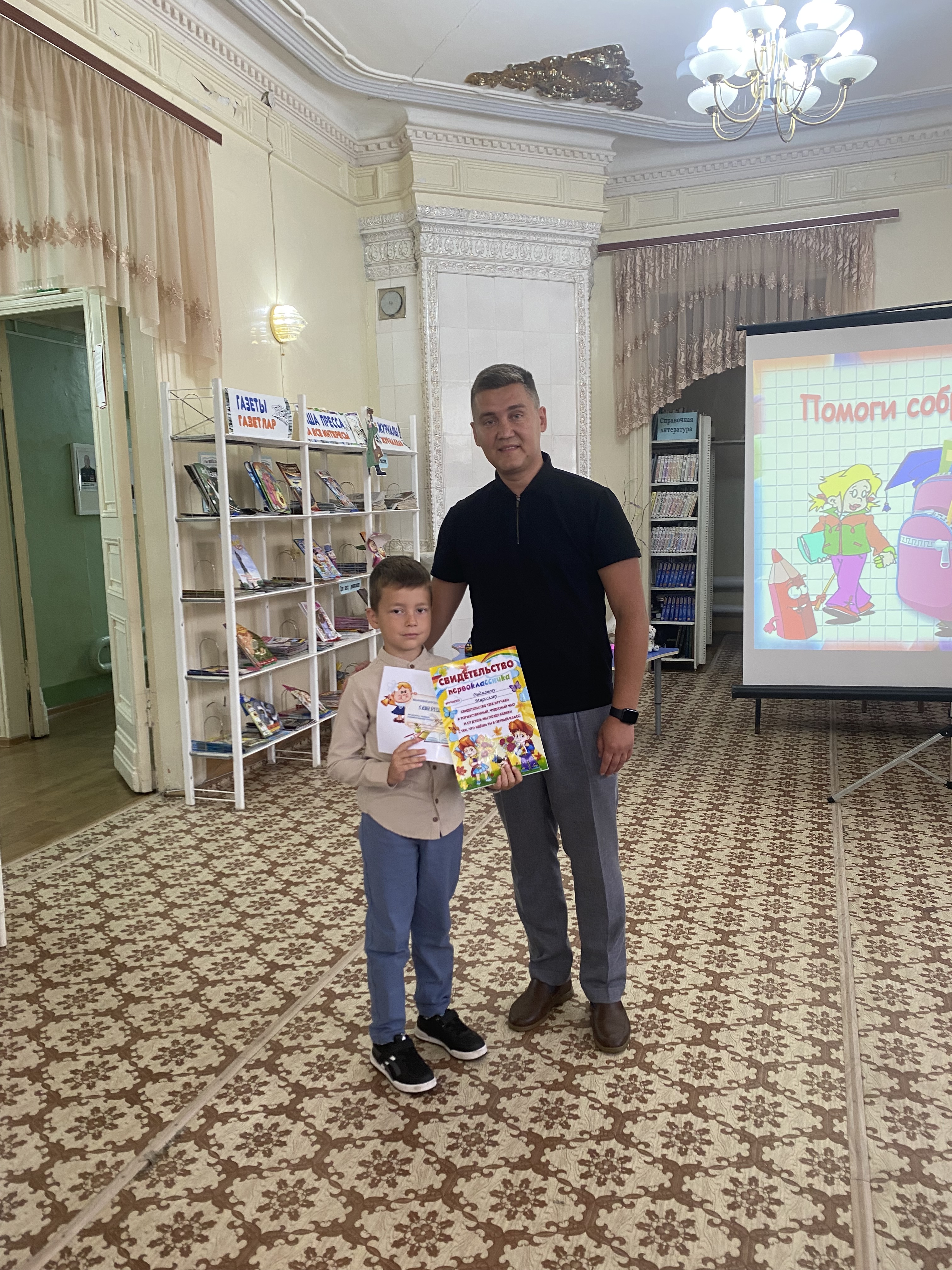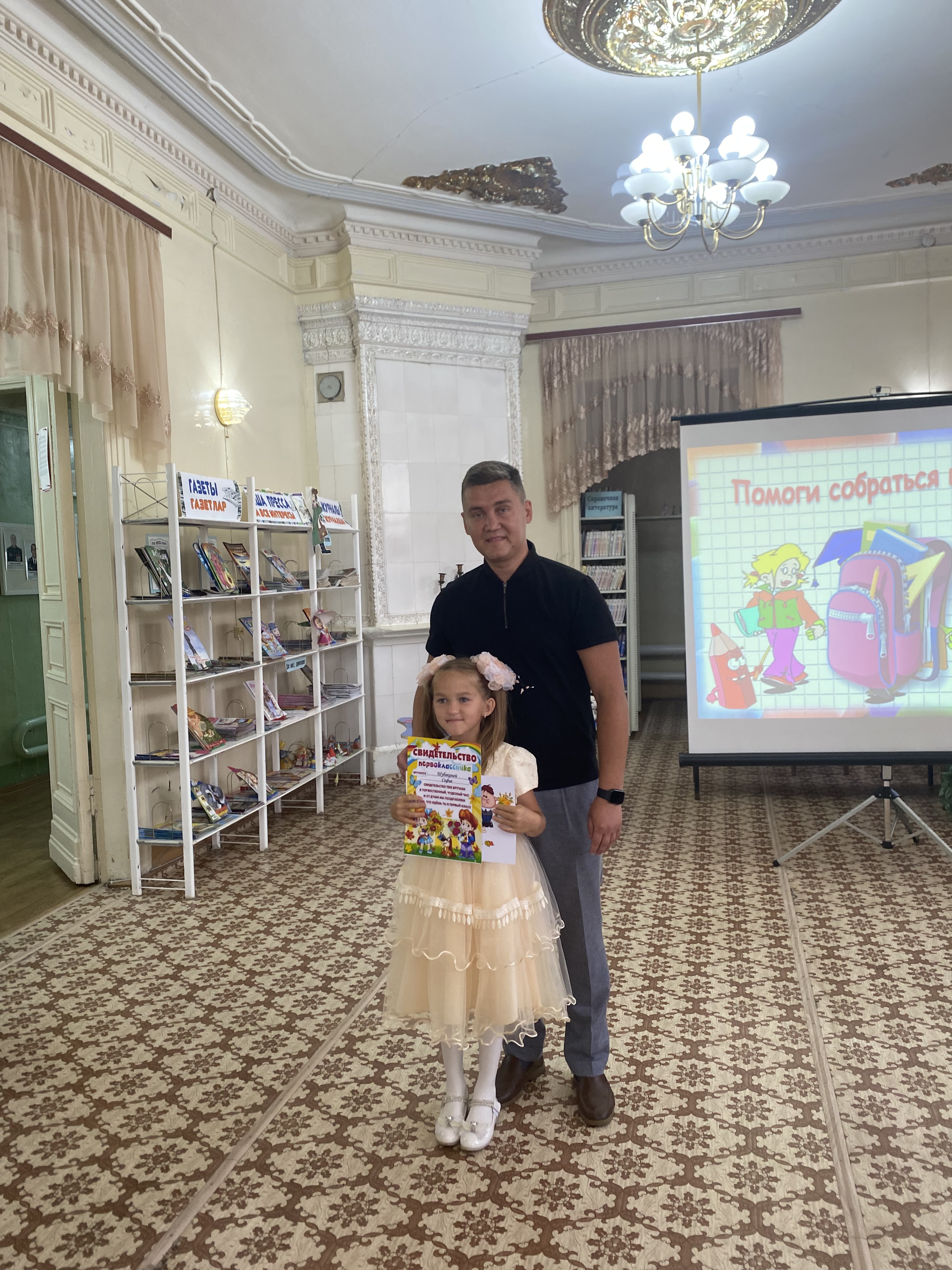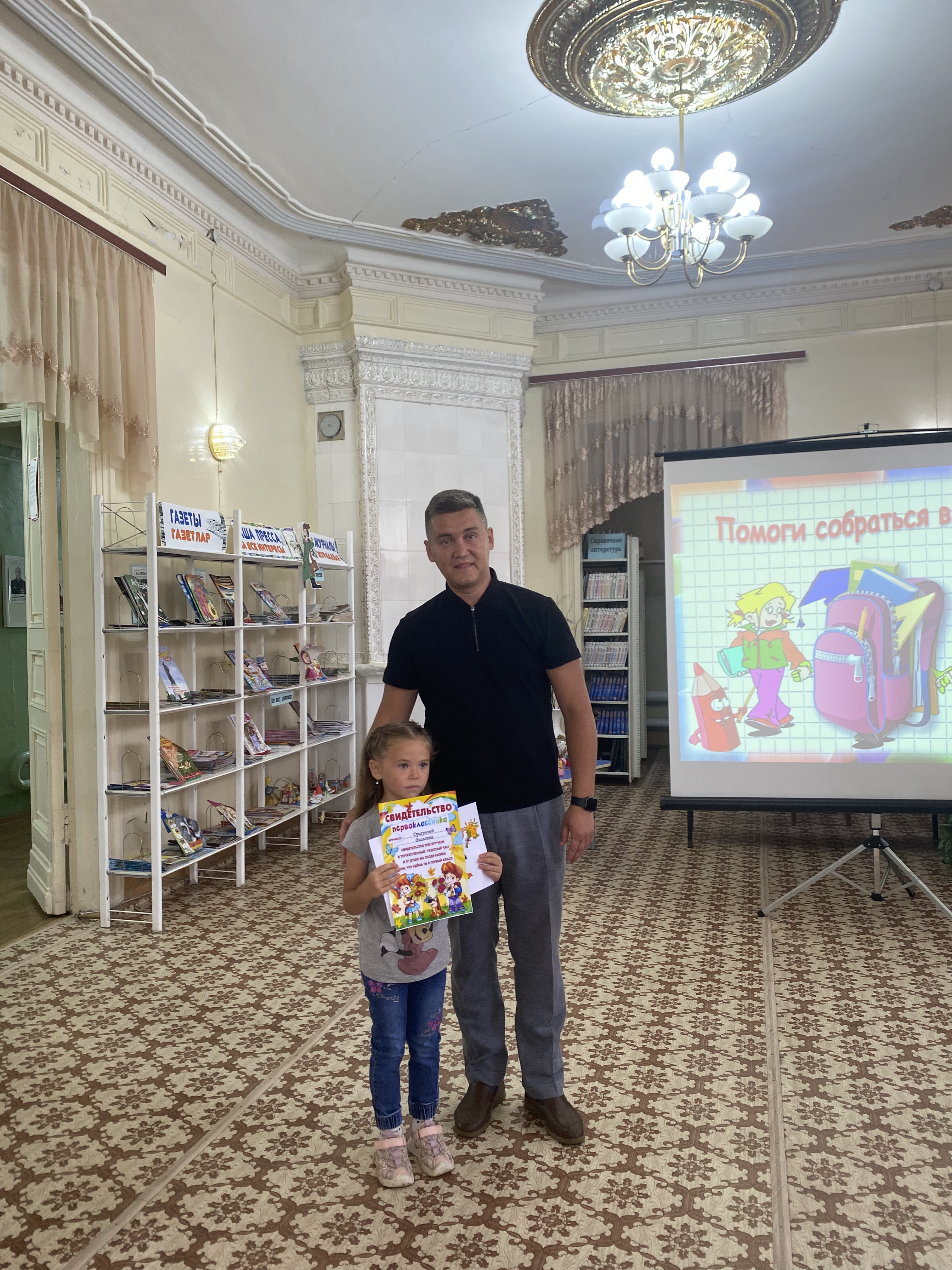 Начальник отдела культуры Исполнительного комитета Тетюшского муниципального района Сергей Арцыбашев поздравил ребят и их родителей с началом нового этапа в их жизни, пожелал будущим первоклассникам учиться только на «отлично» и вручил подарочные сертификаты на приобретение канцелярских товаров 4 будущим первоклассникам и 7 детям участников СВО. Председатель РК профсоюза работников культуры, заведующий отделом организационной работы Гузель Ибрагимова вручила ребятам канцелярские принадлежности.
