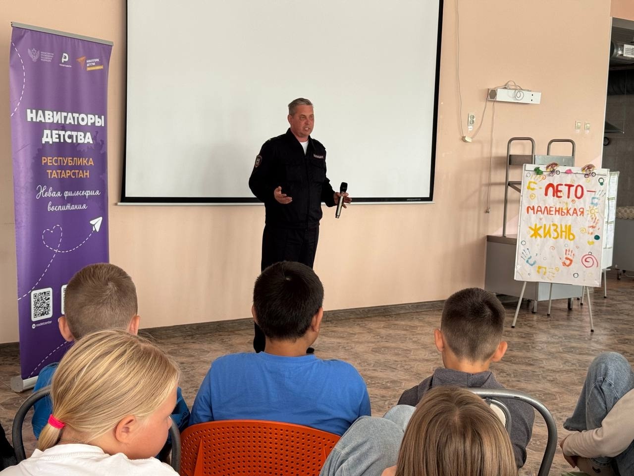 Вот и первые гости - старший инспектор ПДН ОМВД России по Тетюшскому району Баландин В.А.,В рамках Национального проекта "Молодежь и дети", день продолжили развивая спортивные качества и командный дух. Игра "Флажки" выявила самый сплочённый отряд смены.