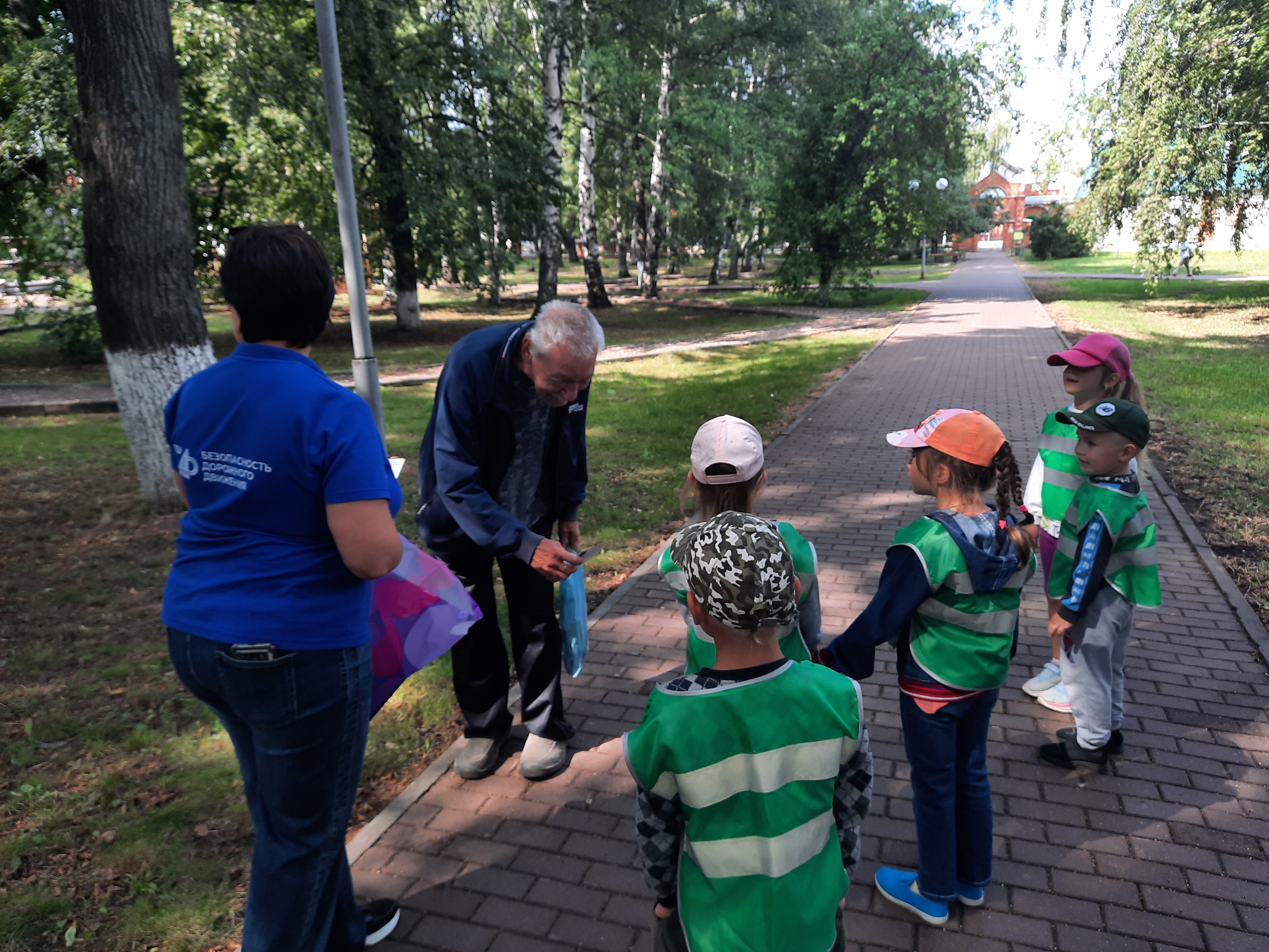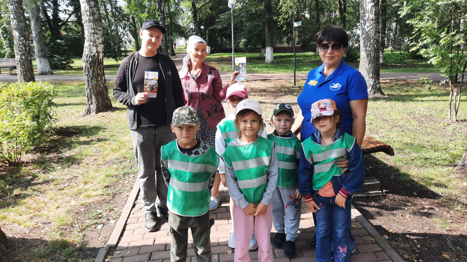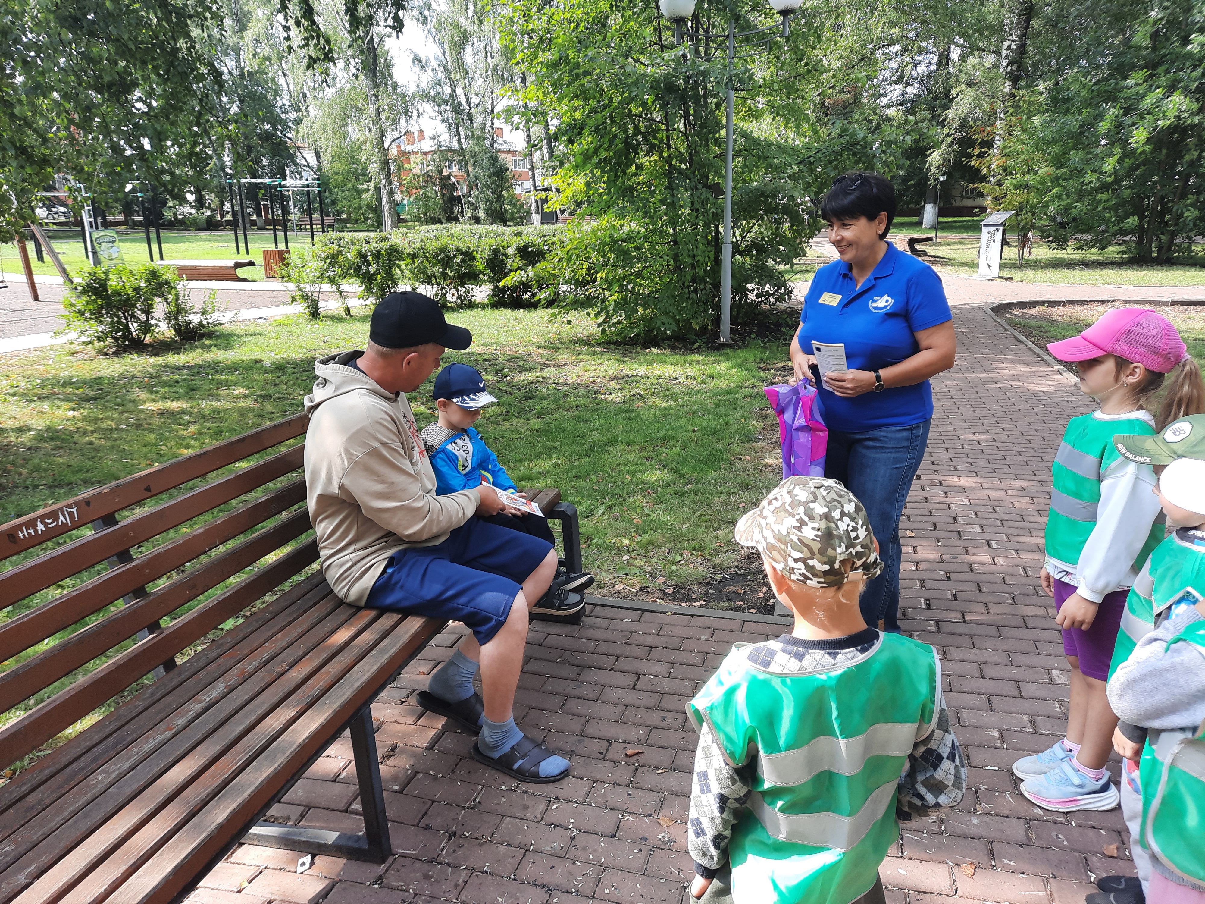 Ребята раздавали прохожим в парке памятки для взрослых и юных пешеходов и призывали быть внимательными и бдительными на проезжей части города.