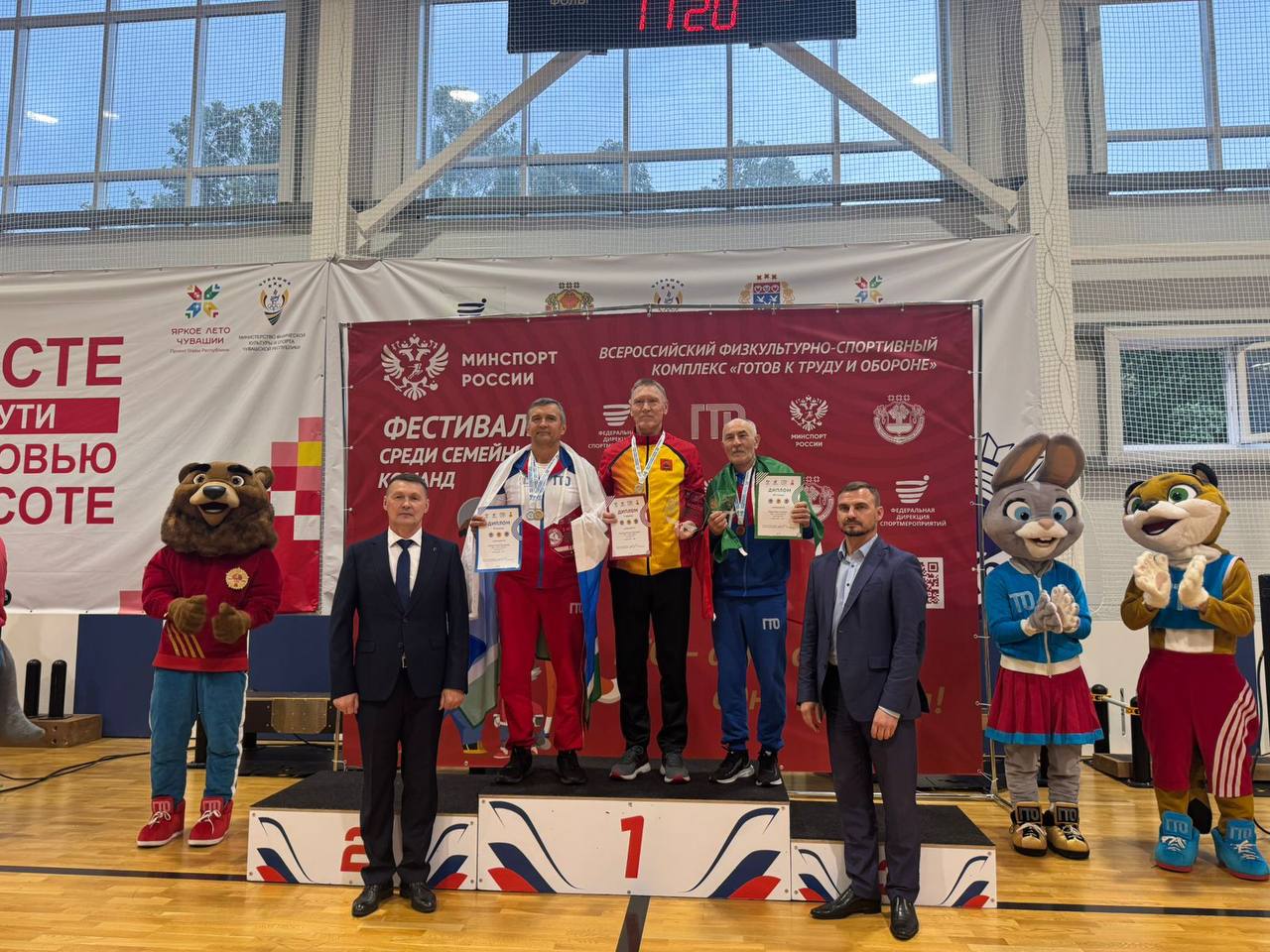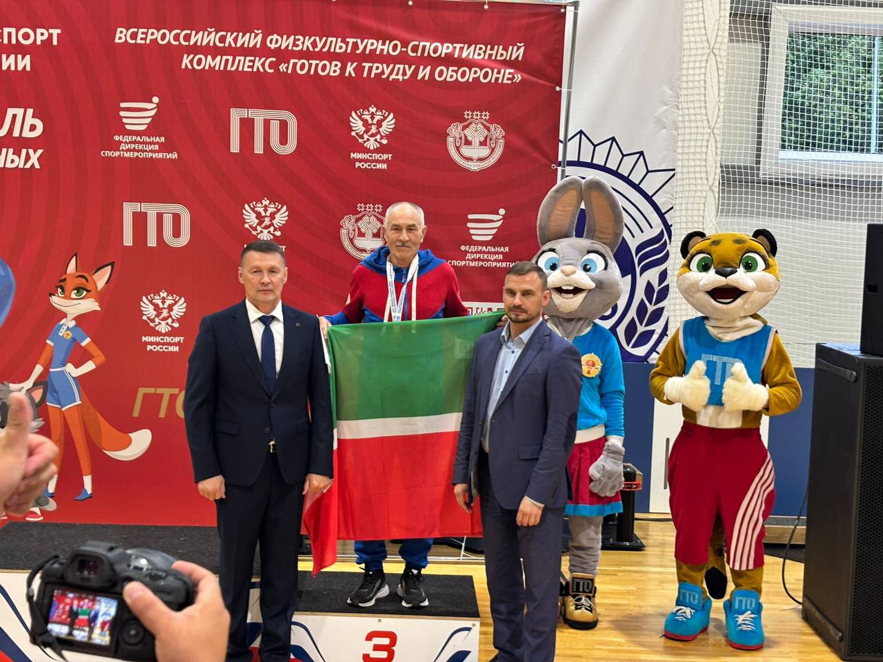 Ринат Хузинович Сафин из города Нижнекамск Республики Татарстан занял третье место в личном зачёте Всероссийского фестиваля ГТО среди семейных команд в возрастной группе дедушек от 50 до 69 лет.