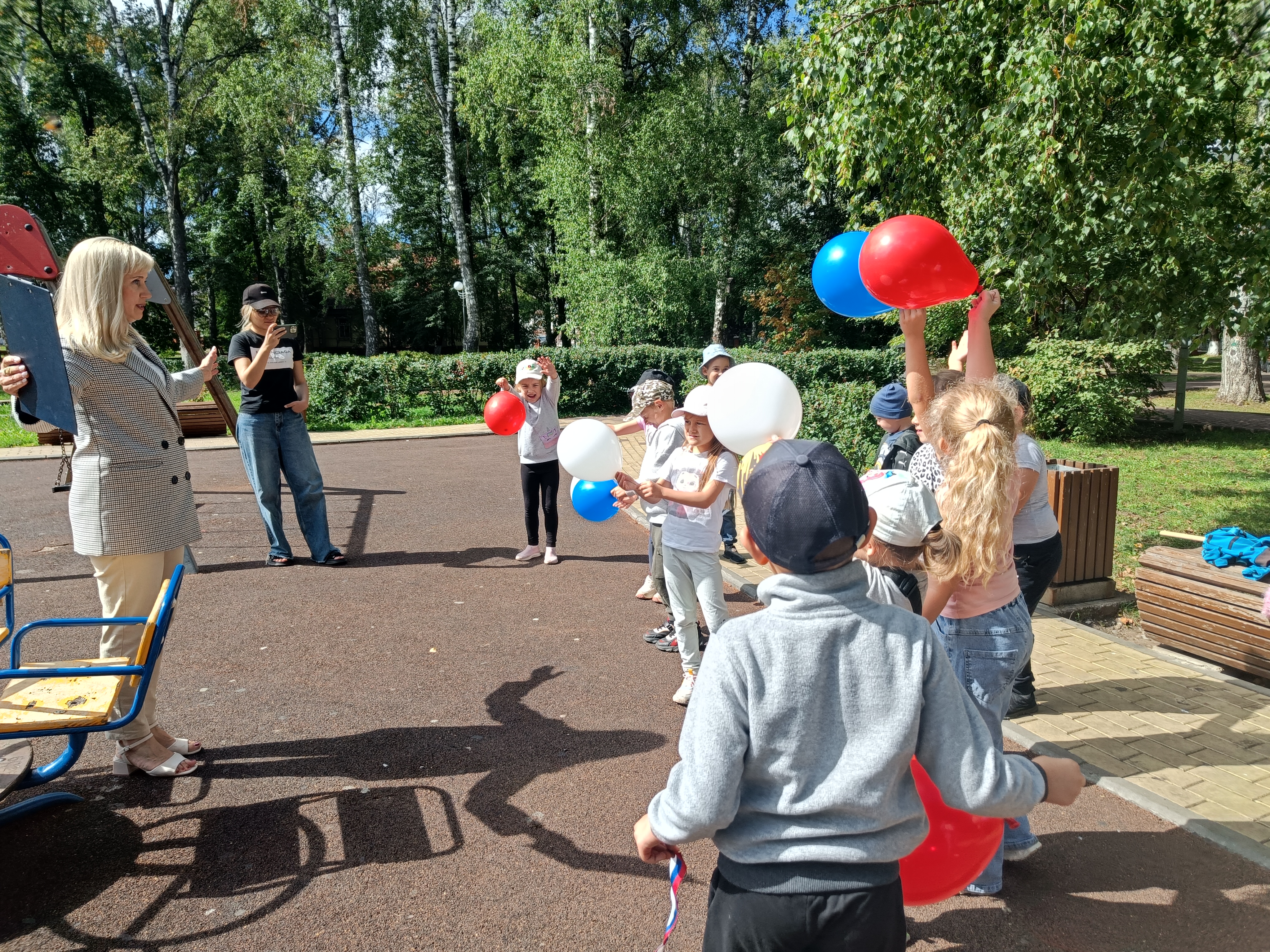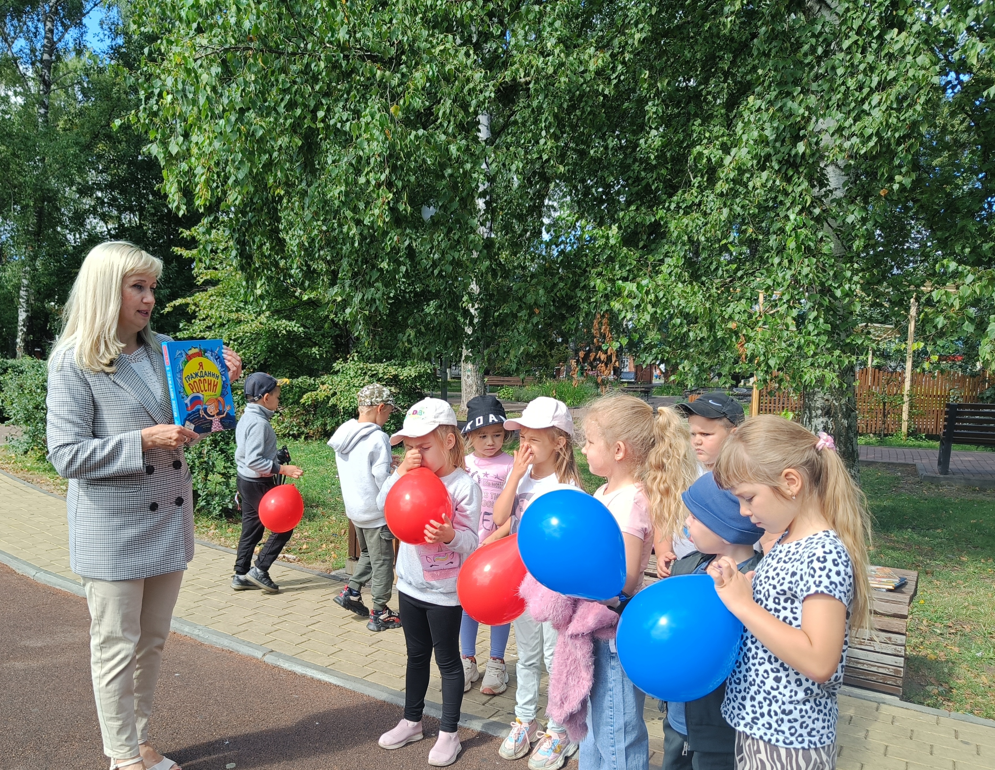 В День Государственного флага Российской Федерации сотрудники Детской библиотеки провели в городском парке исторический экспресс «Величаво над Россией реет флаг страны родной», участниками которого стали воспитанники МБДОУ «Малыш». Дошкольников познакомили с историей российского флага, рассказали, что означают цвета триколора, и в каких случаях поднимается флаг Российской Федерации. Для закрепления полученных знаний ребята приняли участие в игре «Российский гордый триколор», где в качестве атрибутов использовались воздушные шары, повторяющие цвета российского флага, а также ответили на вопросы викторины. Детей ознакомили с красочными книгами о России и основных символах государственной власти.