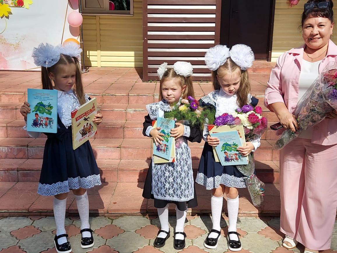 Началась торжественная линейка с церемонии поднятия флага Российской Федерации под гимн страны. С добрыми пожеланиями на новый учебный год обратились к ученикам и родителям директор школы Тухтаркина С.В., глава Большешемякинского сельского поселения Афанасьев А.И.. Наше мероприятие посетил почетный гость заместитель руководителя ИК ТМР РТ Хроменкова Мария Дмитриевна. Из ее рук ребята получили красочные книжки и другие подарки. Гости поздравили первоклассников и вручили им памятные подарки. Каждое слово было полным доброты и поддержки, что создало особую атмосферу праздника.