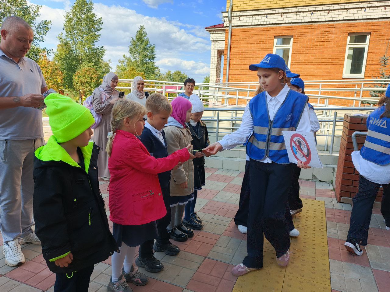 В рамках Всероссийской недели безопасности 18 сентября в татарской школе с отрядом ЮИД и старшим инспектором ИАЗ провели торжественное мероприятие для учащихся первых классов «Посвящение в пешеходы». Ребята из отряда ЮИД подготовили для юных пешеходов увлекательное мероприятие. Первоклассникам юидовцы рассказали правила безопасного участия в дорожном движении, повторили, что при переходе дороги следует обязательно убедиться в безопасности перехода, снять капюшон и убрать в карман наушники и телефон, а также использовать световозвращающие элементы на одежде и рюкзаках в темное время суток. Вместе с инспектором юные пешеходы проследовали к пешеходному переходу, где отрабатывали «полезные» навыки. В конце мероприятия Госавтоинспектор поздравил учащихся с этим праздником и напомнил Правила дорожного движения, которые должны знать все пешеходы. Ученики 1 класса получили в подарок от отряда ЮИД световозвращающие элементы. Такие мероприятия не только обучают, но и делают детей более ответственными участниками дорожного движения.