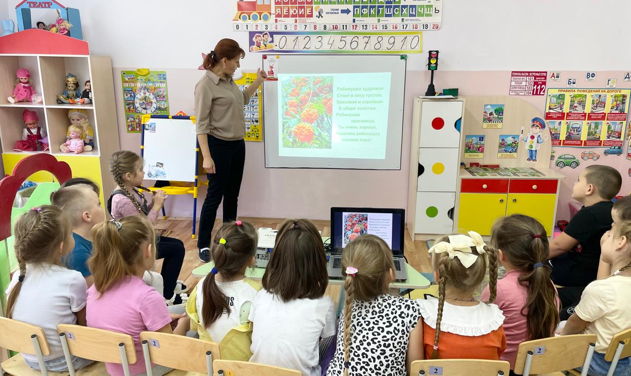 В детском саду «Малыш» прошел тематический день, посвященный рябине. В ходе наблюдения за рябиной дети отметили изменения в окрасе листьев рябины и ягод. Также узнали о лечебных свойствах этих ягод, о том, что поздней осенью ягоды рябины приобретают приятный горьковато-кислый вкус, который особенно нравится птицам. На занятии по художественно эстетическому развитию ребята младшей группы изобразили «Гроздь рябины» в технике пластилинографии. Дети старшей группы нарисовали гроздья рябины. Процесс выполнения работы заинтересовал всех. Готовые картины дети разместили на выставке и с большим удовольствием рассматривали получившиеся гроздья рябины.