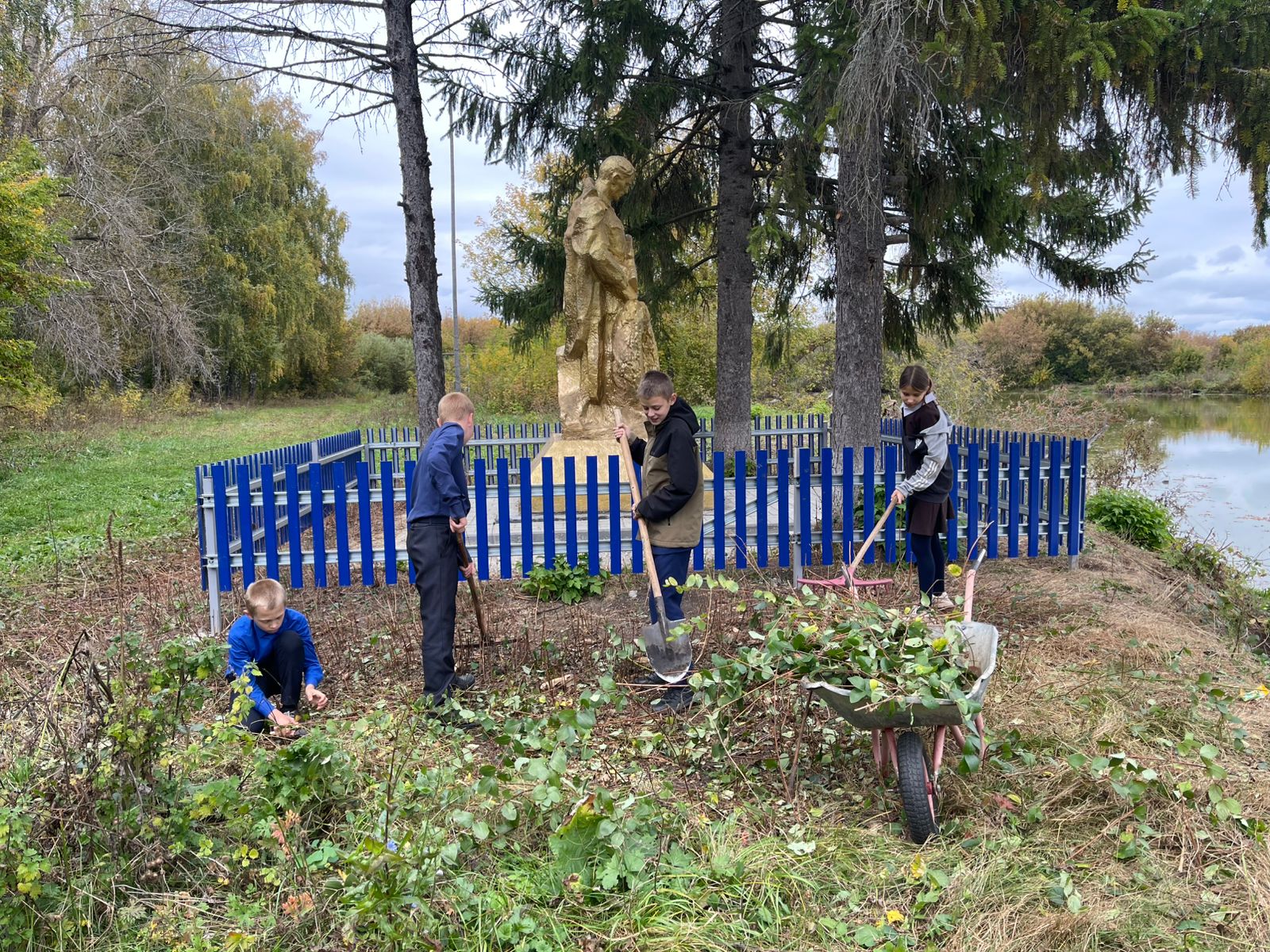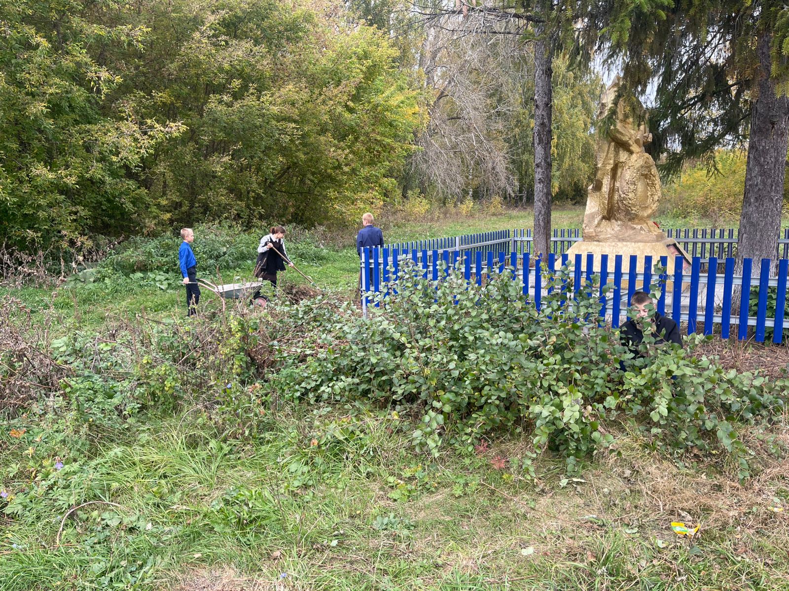 В рамках осенней недели добра учащиеся Нармонской школы почистили от поросли территорию памятника Неизвестному солдату с. Нармонка.